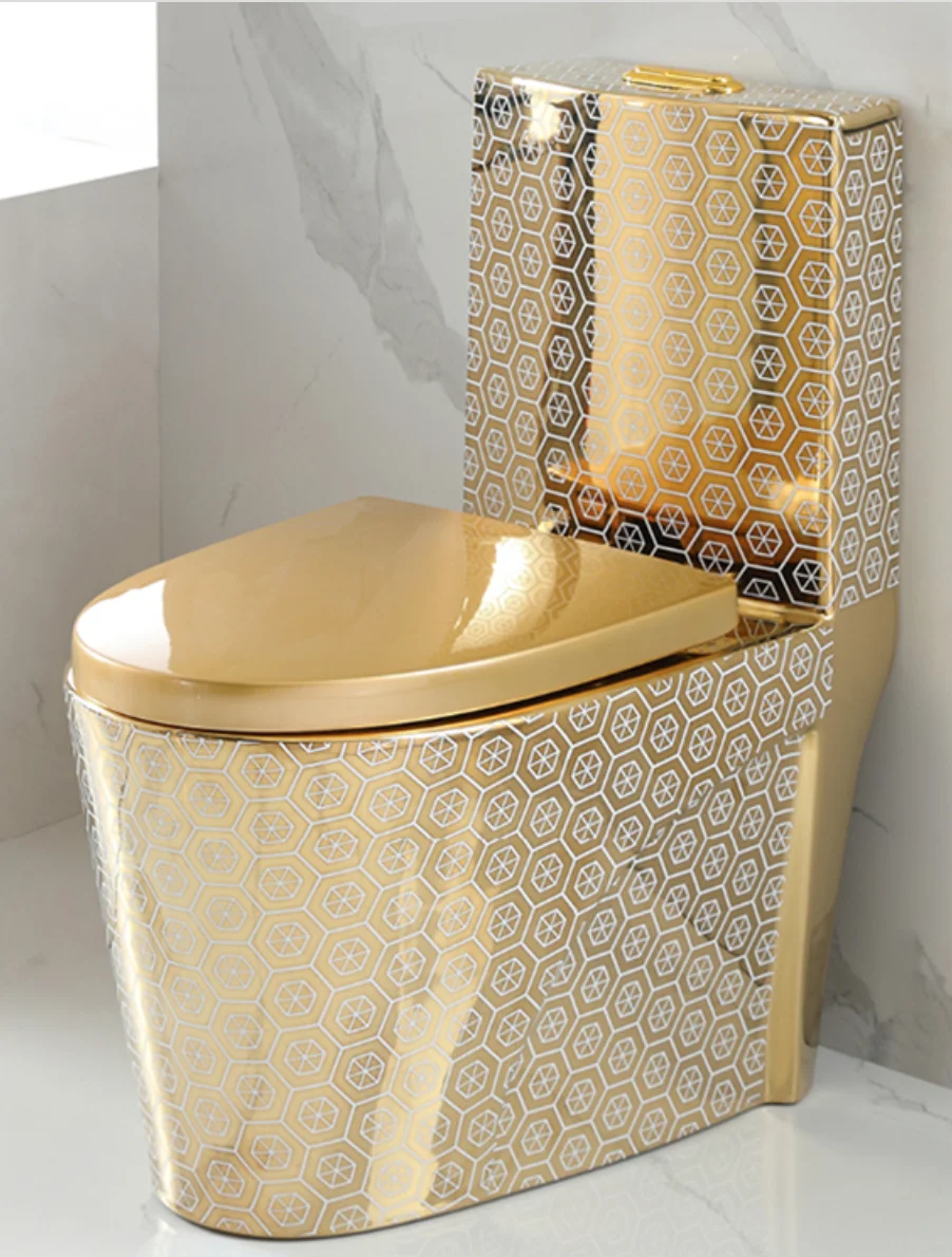 Home Bathroom Products,Sinks Toilet and Others Toilets Chaozhou City Chao'an District Dengtang Town, Hengmei Ceramic Factory Luxury golden high-end bathroom one piece toilet hot sale water saving modern closet