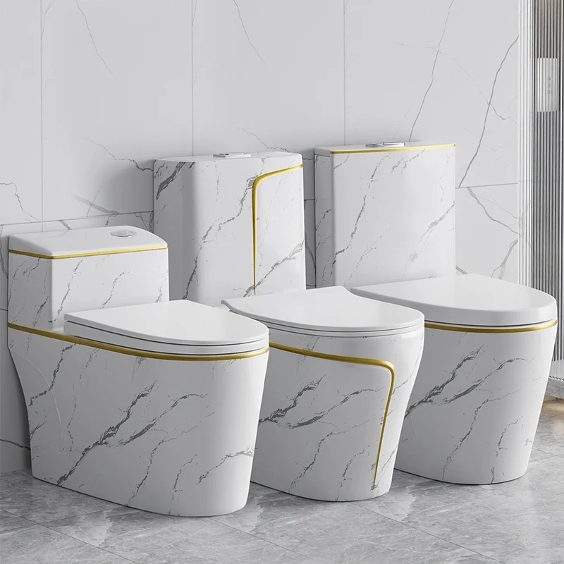 Hotel bathroom one piece toilet luxury floor-standing water closet independent white marble pattern WC ceramic toilet