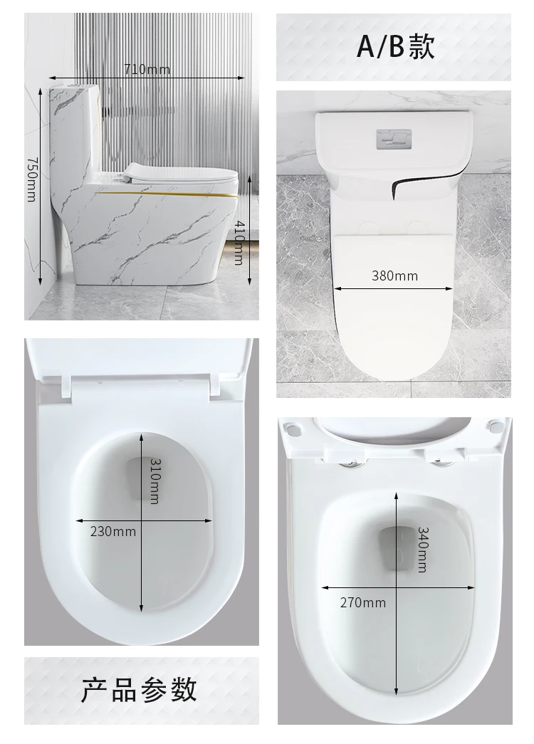 Home Bathroom Products,Sinks Toilet and Others Toilets Chaozhou City Chao'an District Dengtang Town, Hengmei Ceramic Factory Hotel bathroom one piece toilet luxury floor-standing water closet independent white marble pattern WC ceramic toilet