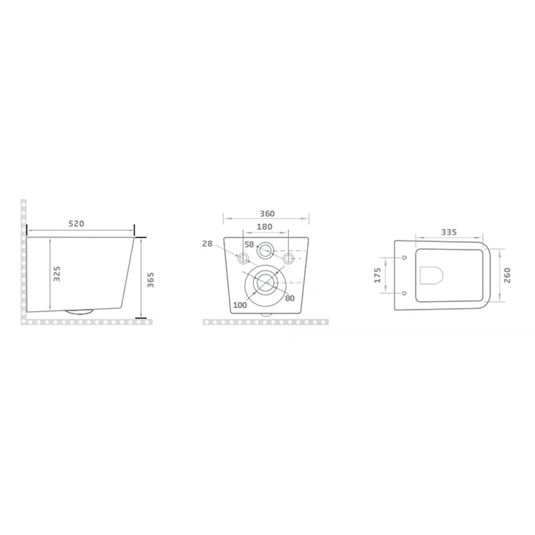 Hot sale modern high grade square design wall mounted hanging toilet bowl designs