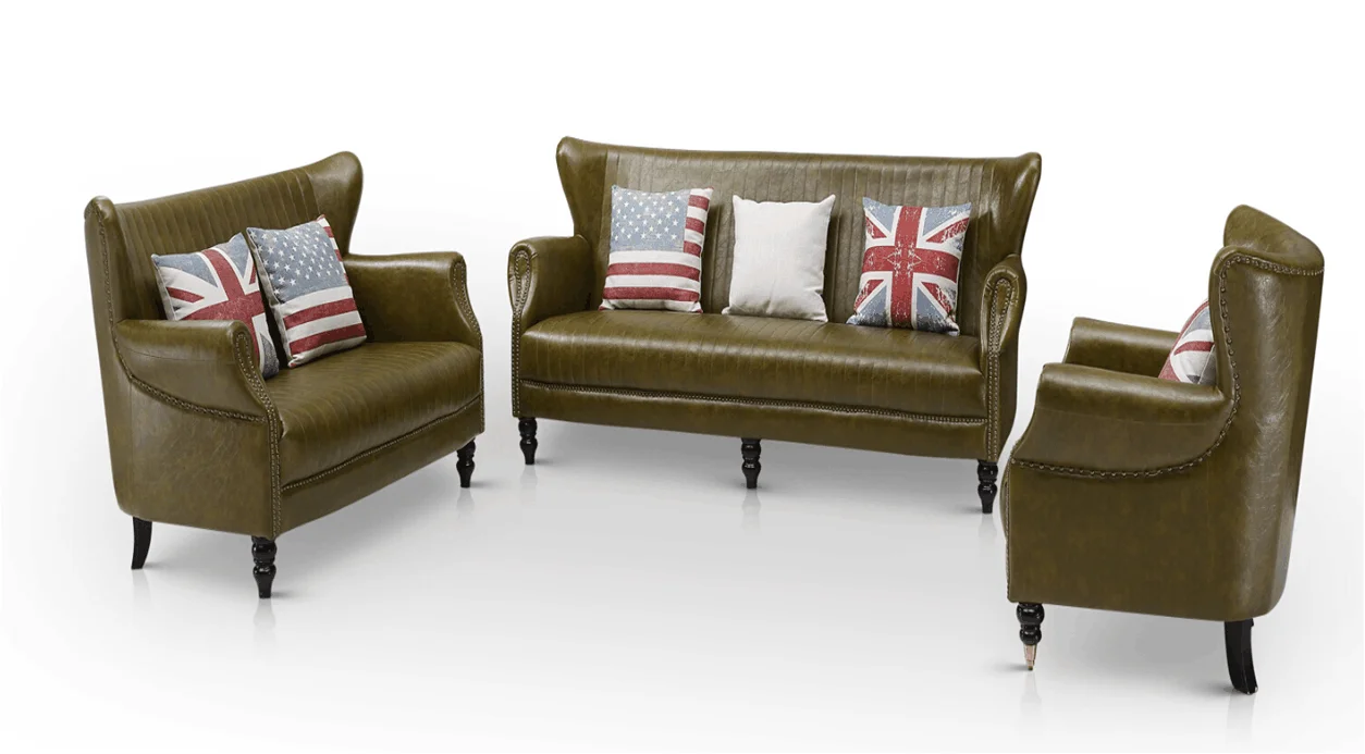 Traditional American Style Apartment retro leather living room sofas