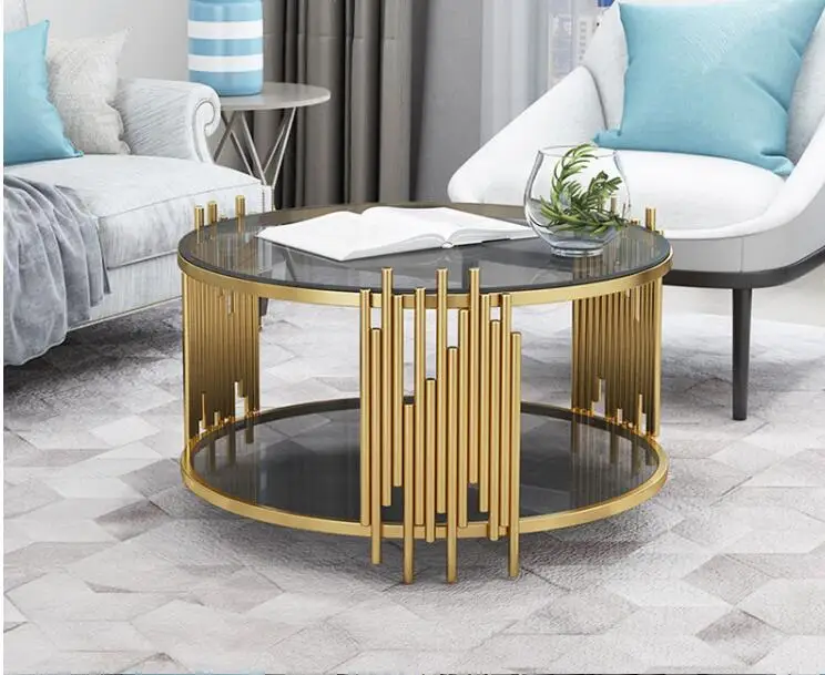 Home Movable Housing Furniture & Household Appliances Living Room Furniture Coffee Tables Foshan Zhongcun Furniture Co., Ltd. Hot sale living room stainless steel frame round dining coffee table with glass top
