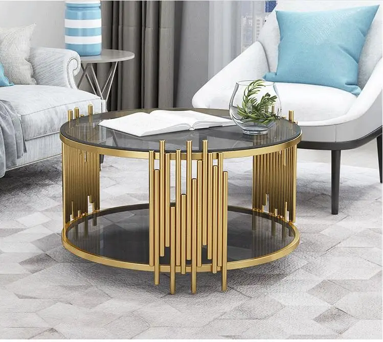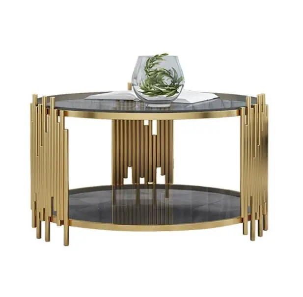 Hot sale living room stainless steel frame round dining coffee table with glass top