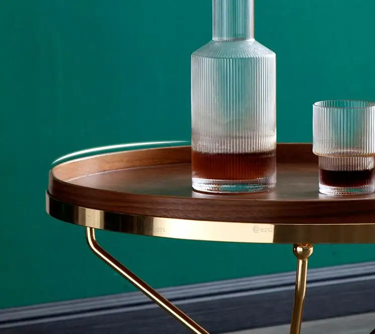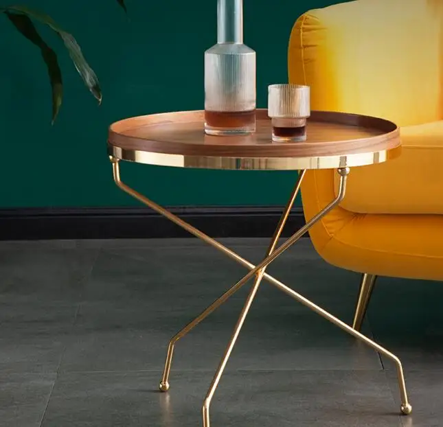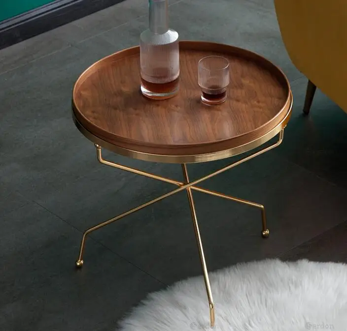 Golden Modern wooden round tea table sofa side simple steel coffee table