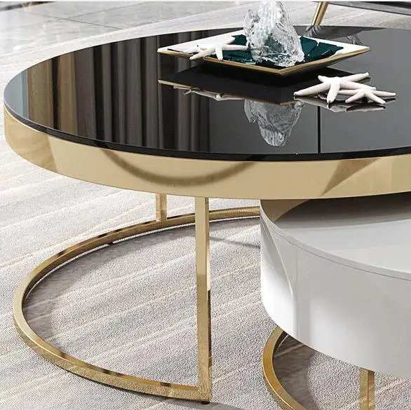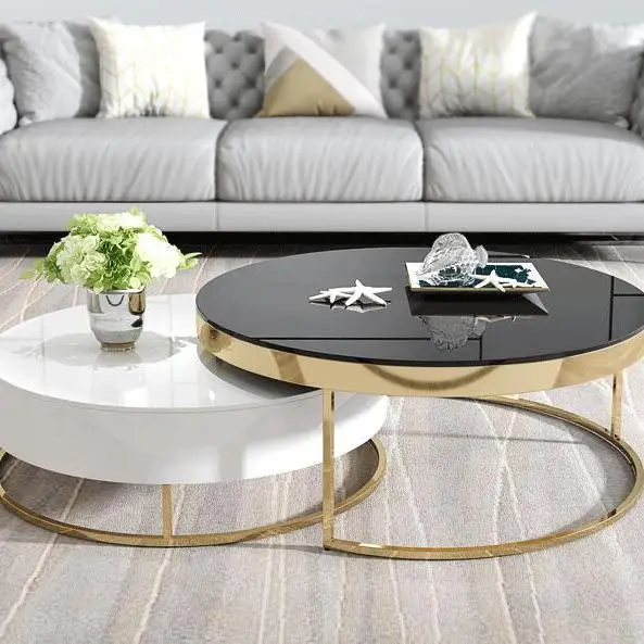 Home Movable Housing Furniture & Household Appliances Living Room Furniture Coffee Tables Foshan Zhongcun Furniture Co., Ltd. Golen Modern marbling round tea table sofa side simple steel coffee table