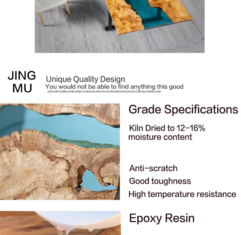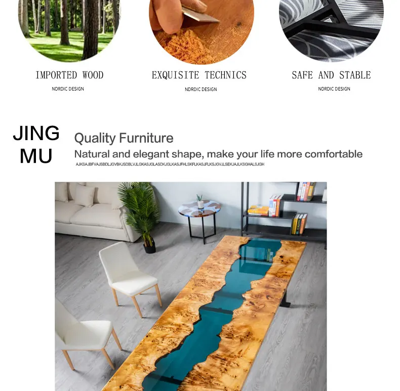 Home Movable Housing Furniture & Household Appliances Dining Room Furniture Dining Tables Nanning Jingmu Arts Funiture Factory Sale Retro Furniture Antique Design Poplar River Table Epoxy Resin Dining Table