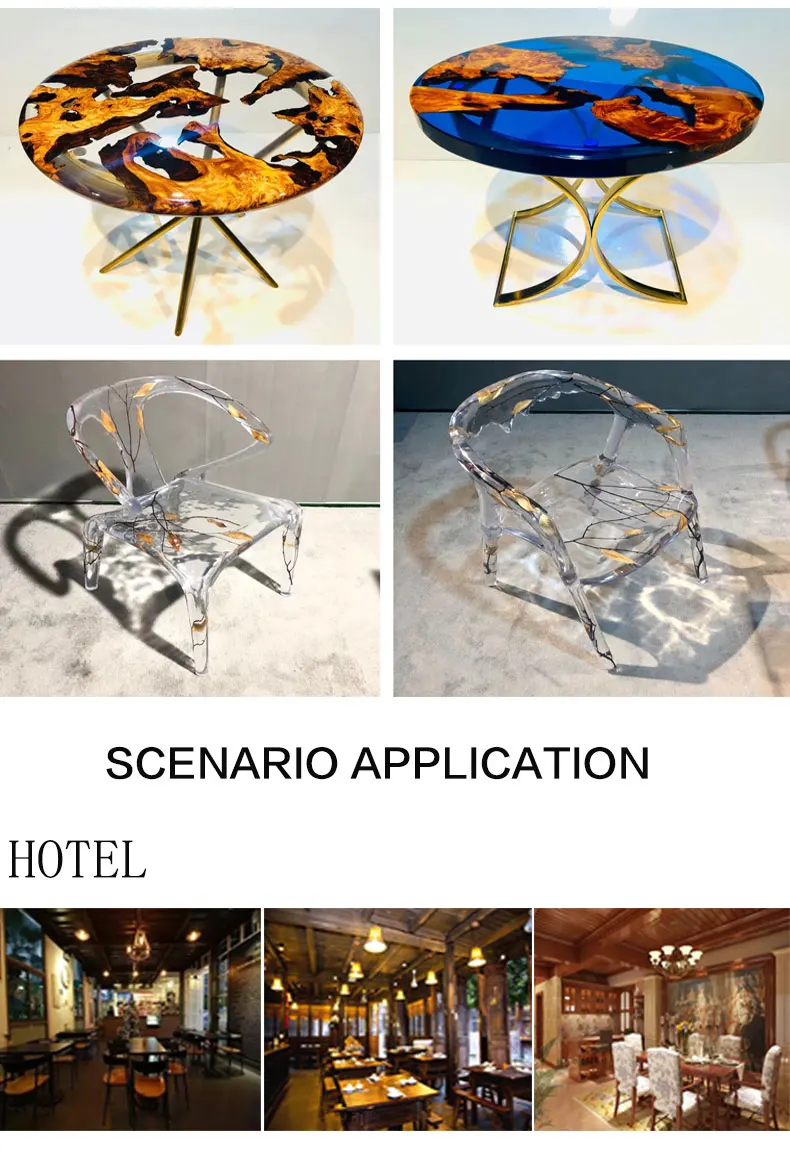 Mainly produce Art Tables, Chairs and any Resin Wood related products, high efficient and advanced technology can produce high qulity and competitive products as requested by the clients. Nature special wood, Unique design. So our products are highly welcomed by worldwide market.