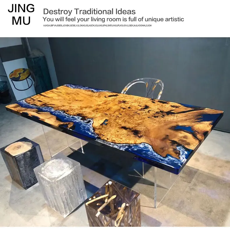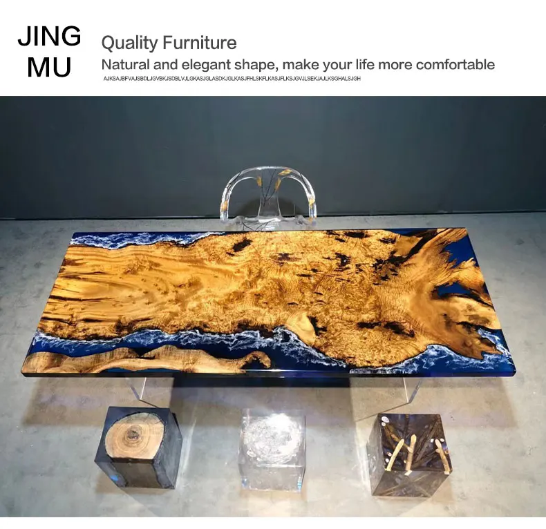 Home Movable Housing Furniture & Household Appliances Dining Room Furniture Dining Tables Nanning Jingmu Arts Funiture Factory Modern Furniture Epoxy Resin Rock Ocean Wave Resin Coffee Table Wood Plank Epoxy Dining Table Live Edge Epoxy Table for Sale