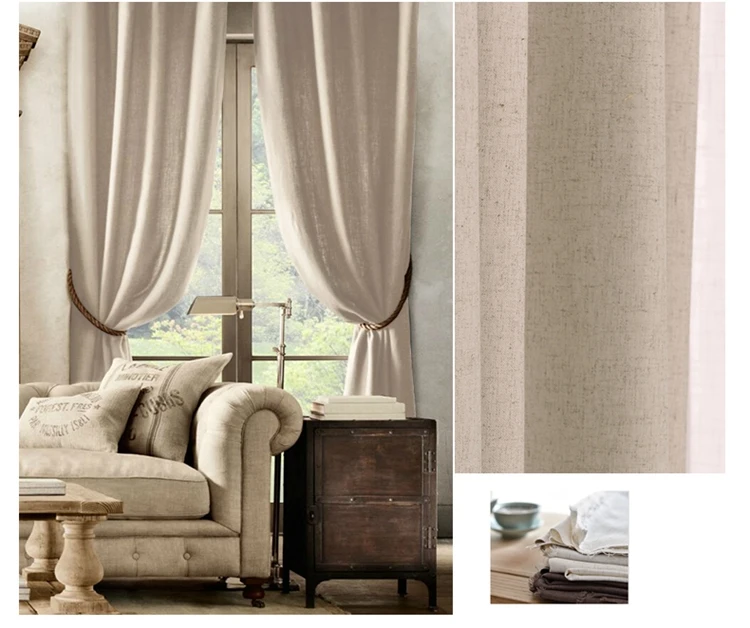 Simple natural linen room curtain fabric stock valance curtain patterns