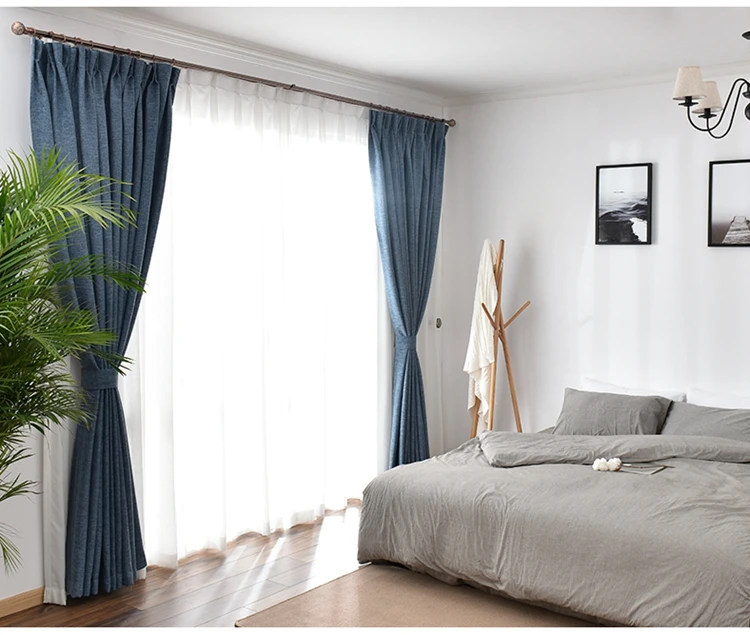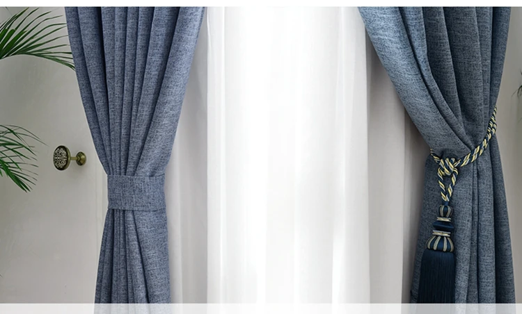 Professional factory supply triple weaving blackout linen fabric flame retardant curtains for hotel