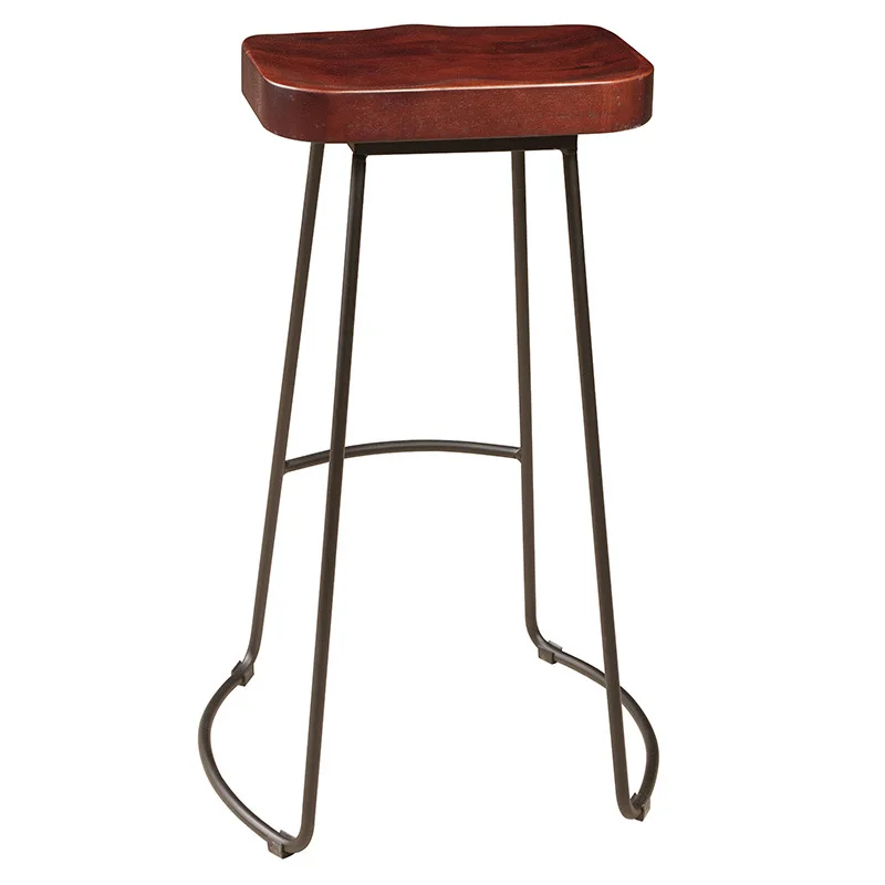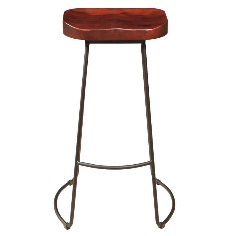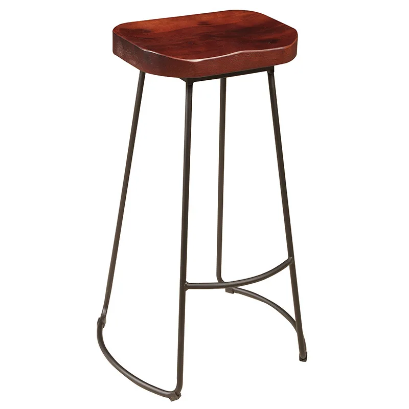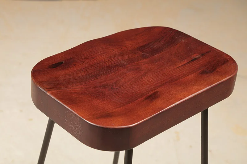 Minimalist Antique Style High-quality Pub Coffee House Western Restaurant Metal Bracket Solid Brown Birch Wood High Bar Stool