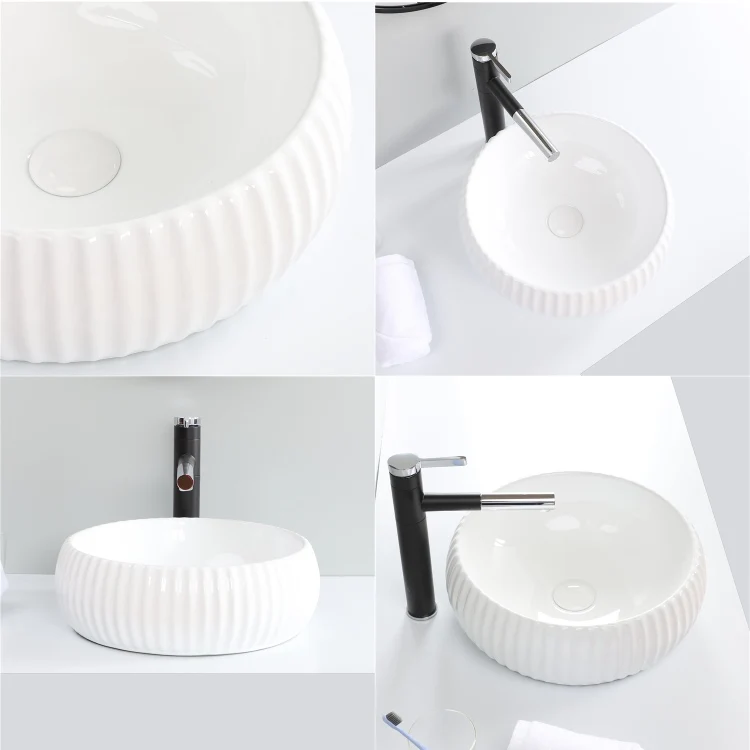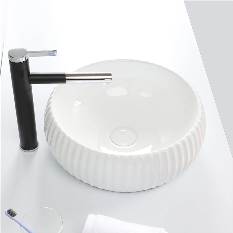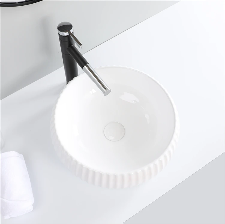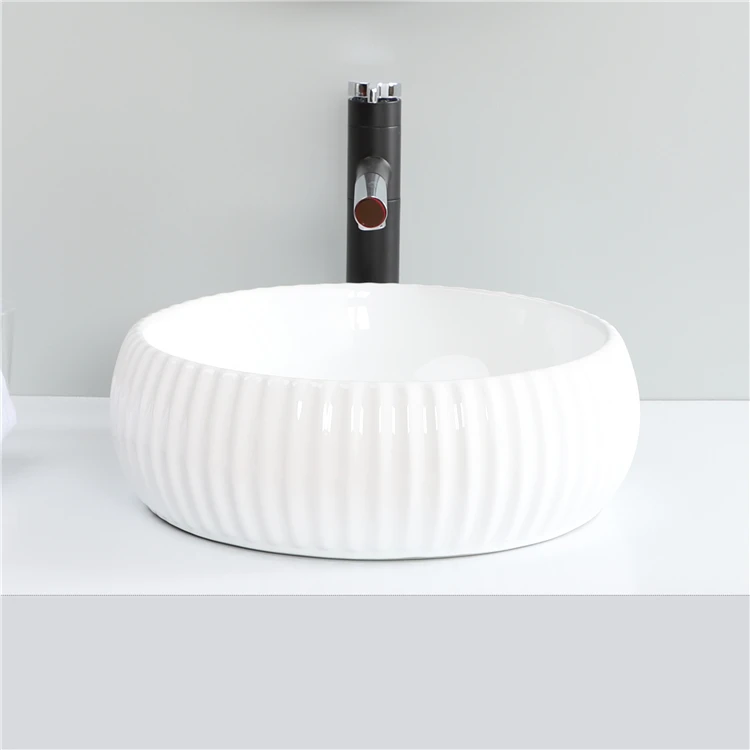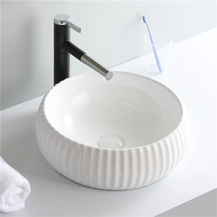 New Design Round White Art Counter Luxury Ceramic Bathroom Sink Wash Basin