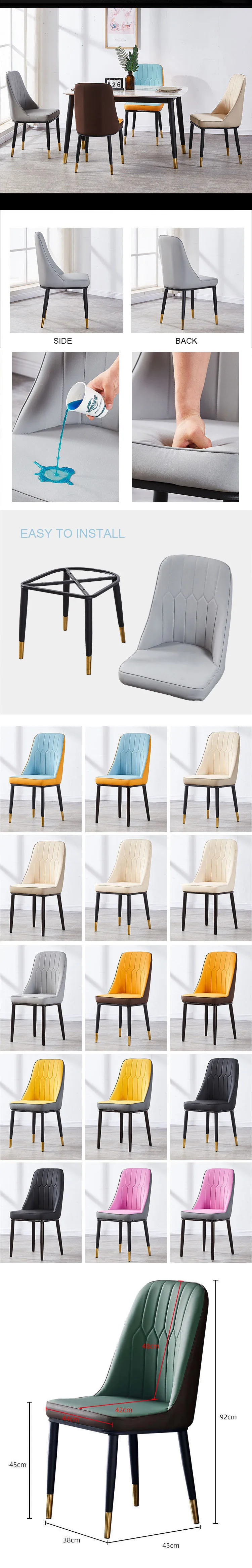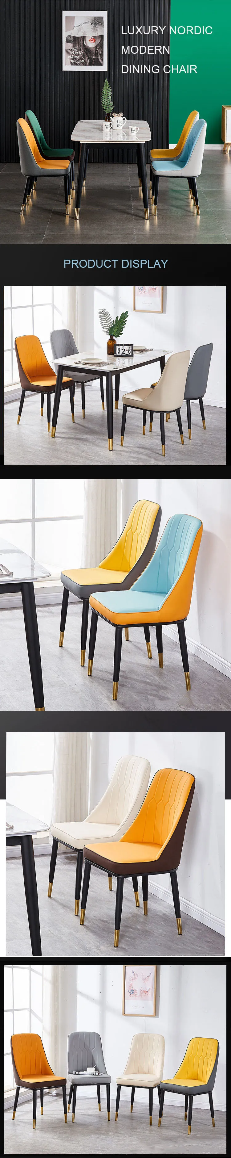 Upscale Wholesale Price Nordic Dining Room Coffee House Home Furniture Metal Frame Curved Back Soft Leather Cover Dining Chairs