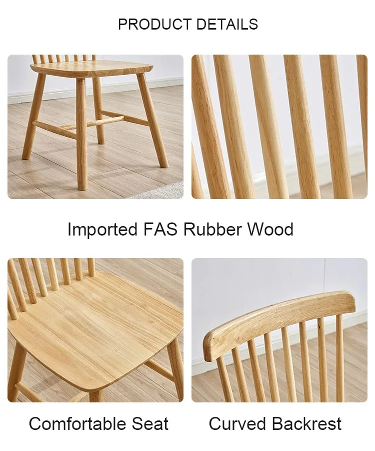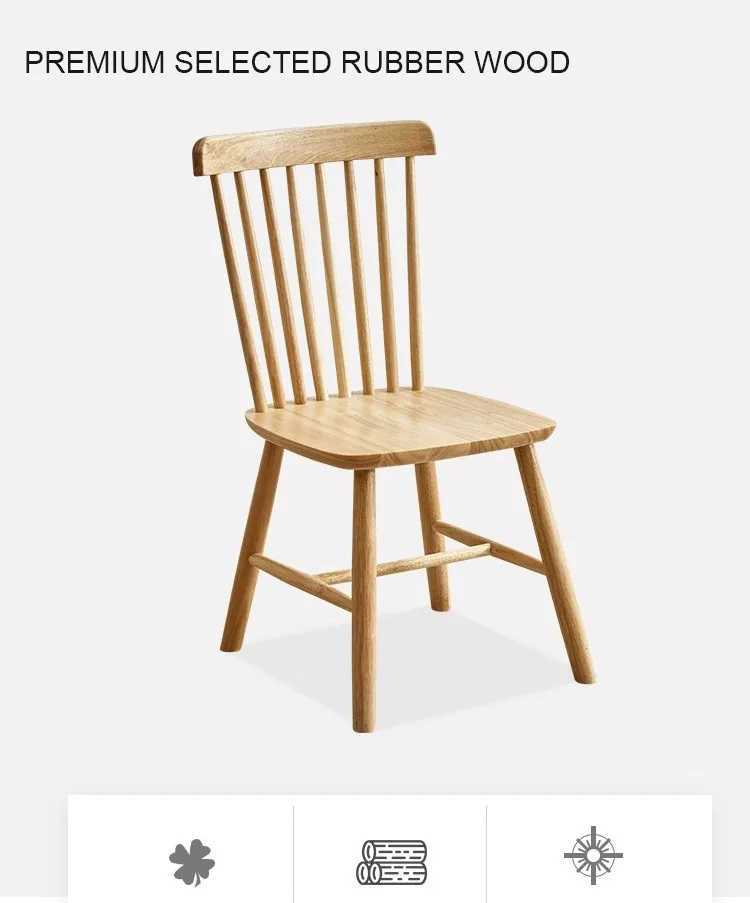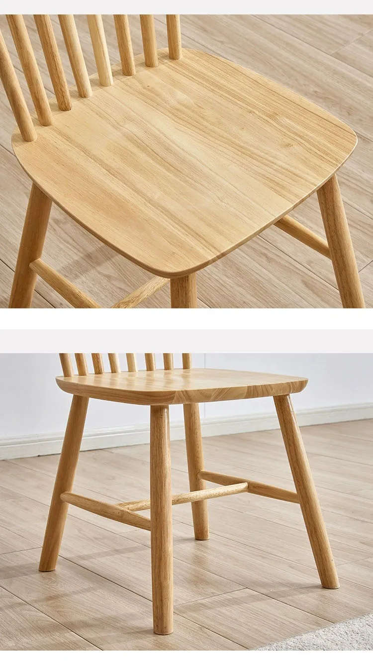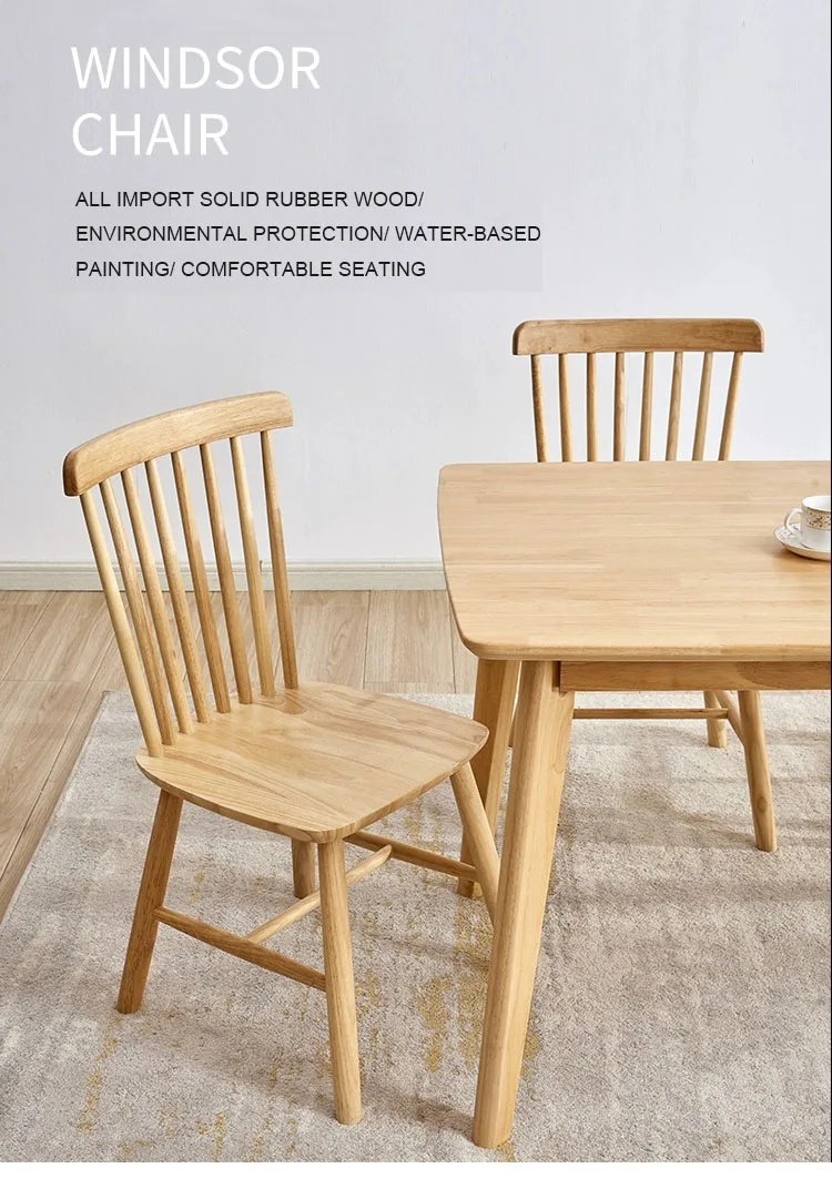 Upscale Nordic Windsor Chair Dining Room Coffee House Natural Color Environmental Imported Rubber Solid Wooden Dining Chair