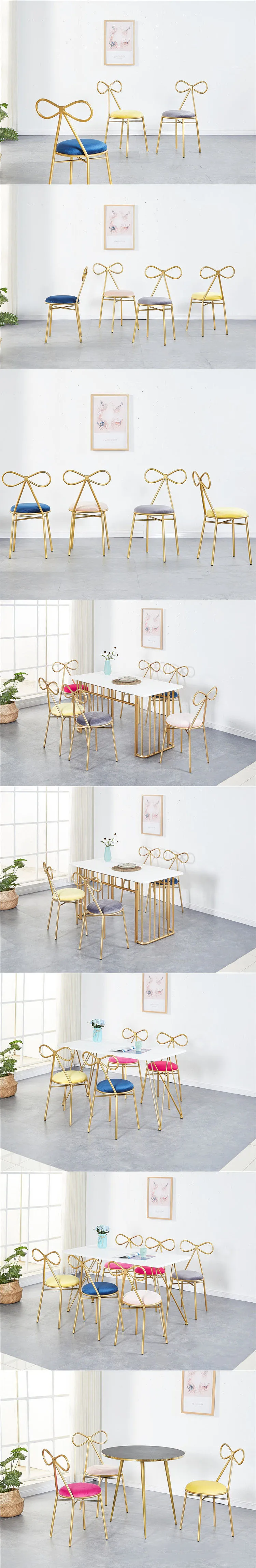 Hottest Nordic Style Simple Elegant Living Room Study Dining Hall Bow-shaped Backrest Metal Golden Frame Velvet Cover Chair