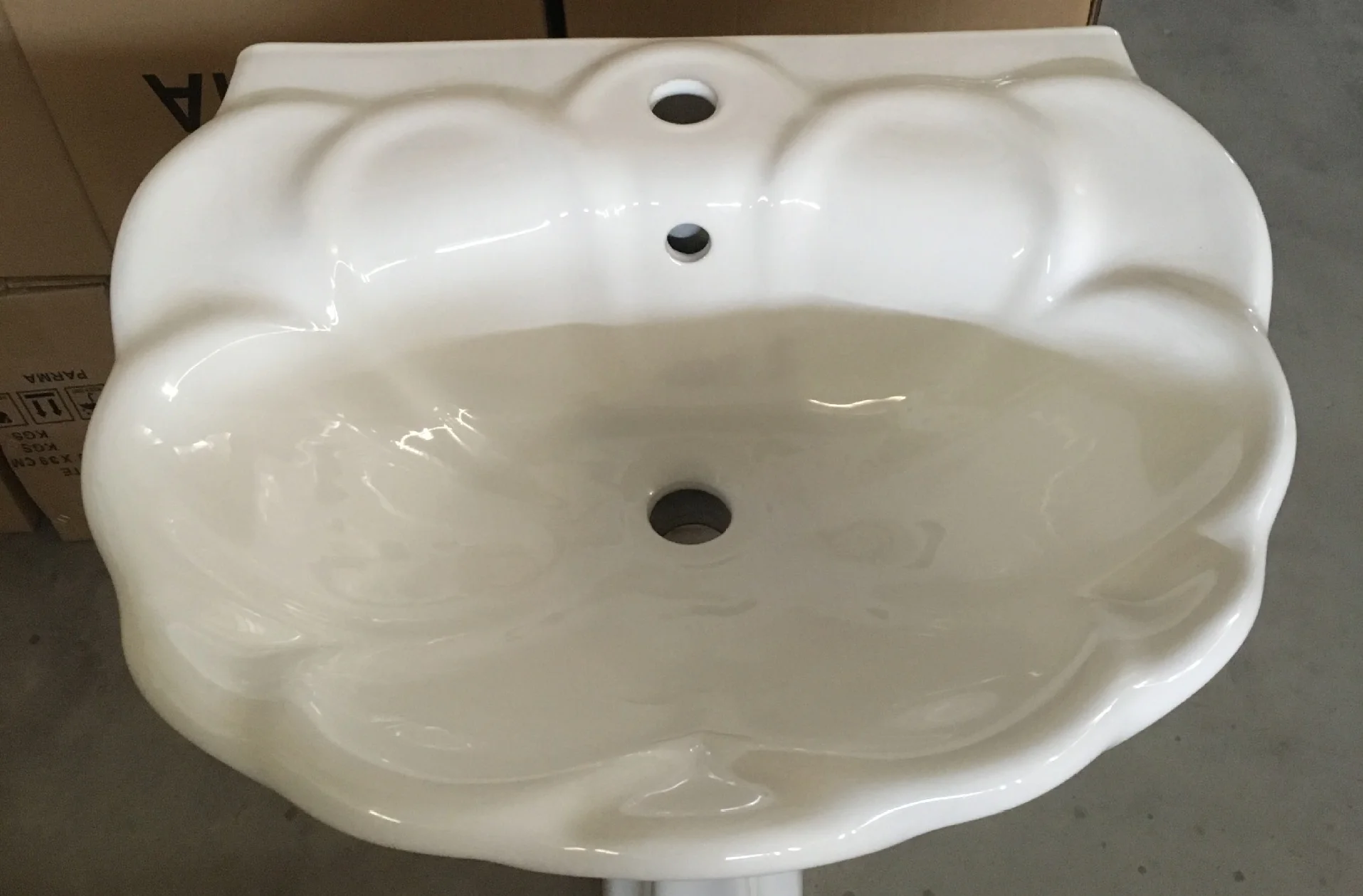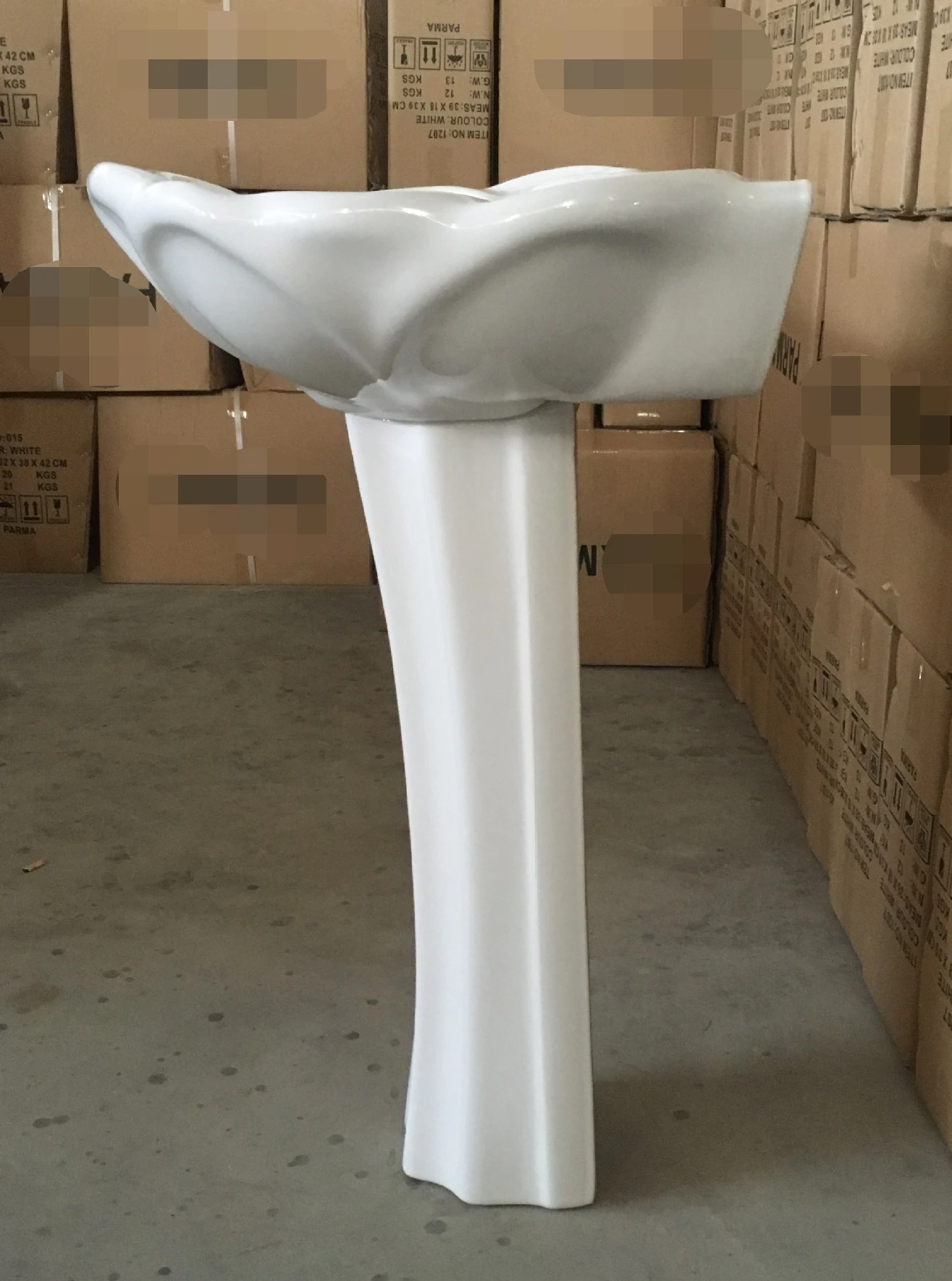 Foshan Flower shape designer wash basin with pedestal ceramics floor standing wash basin price