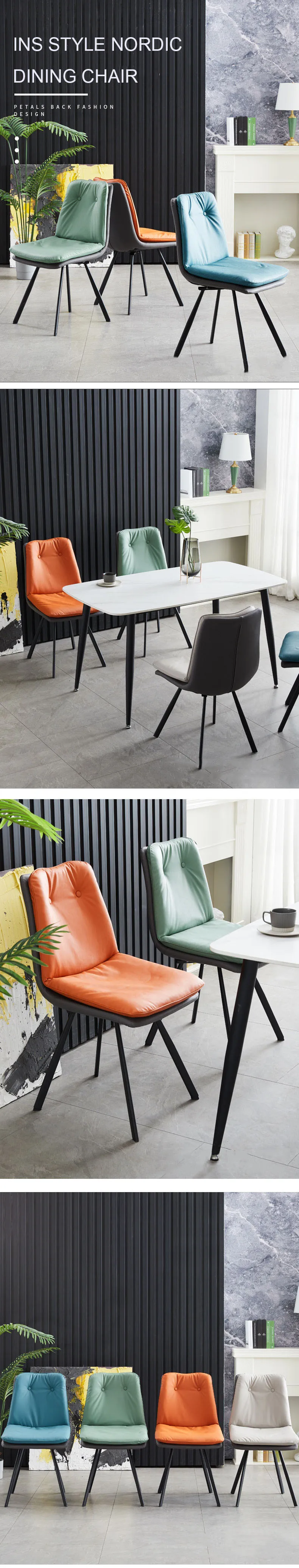 High-quality Export Nordic Style Home Office Dining Room Reception Double-layer Curved Board Metal Frame Leather Dining Chairs
