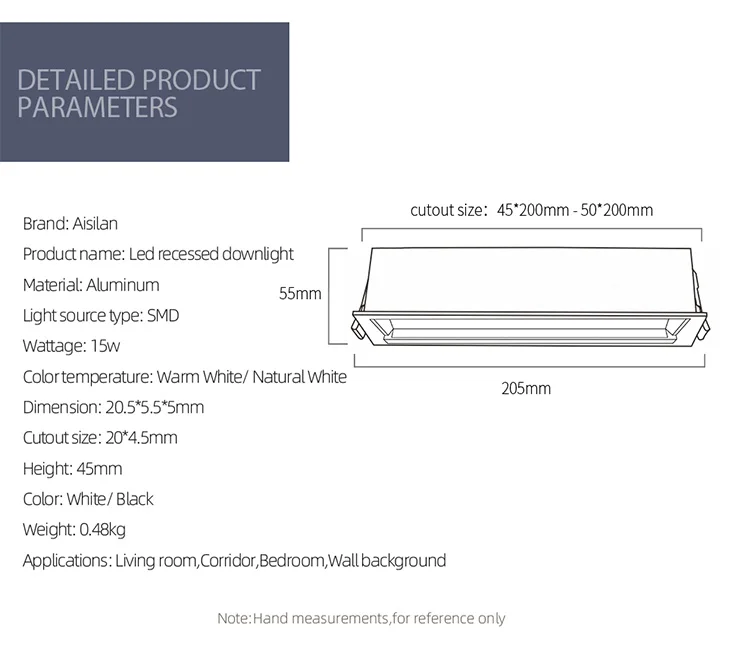 Home Lighting, Artwork & Interior Decoration Accessories Indoor Standard Lighting Downlights Zhongshan Aisilan Lighting Technology Co., Ltd. Aisilan slim semi rimless focos empotrables mini rectangle square linear adjustable led downlight wall washer