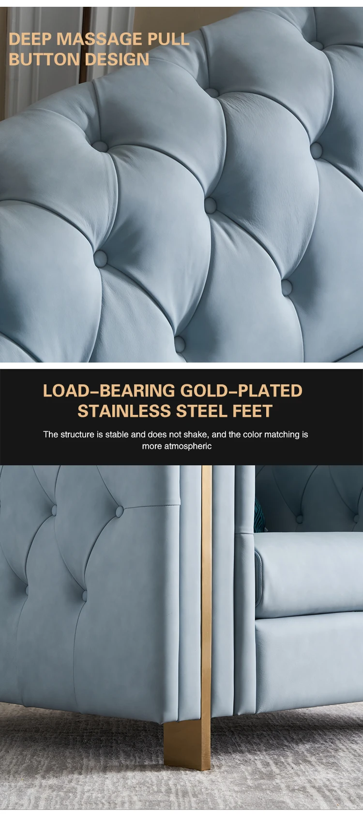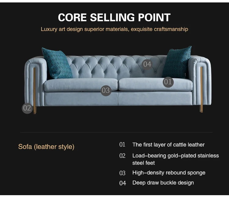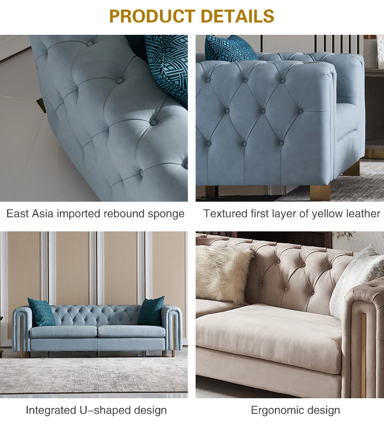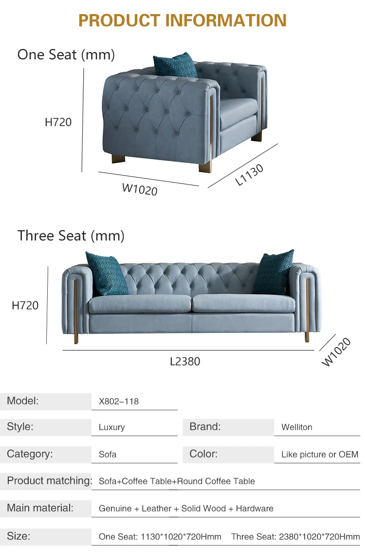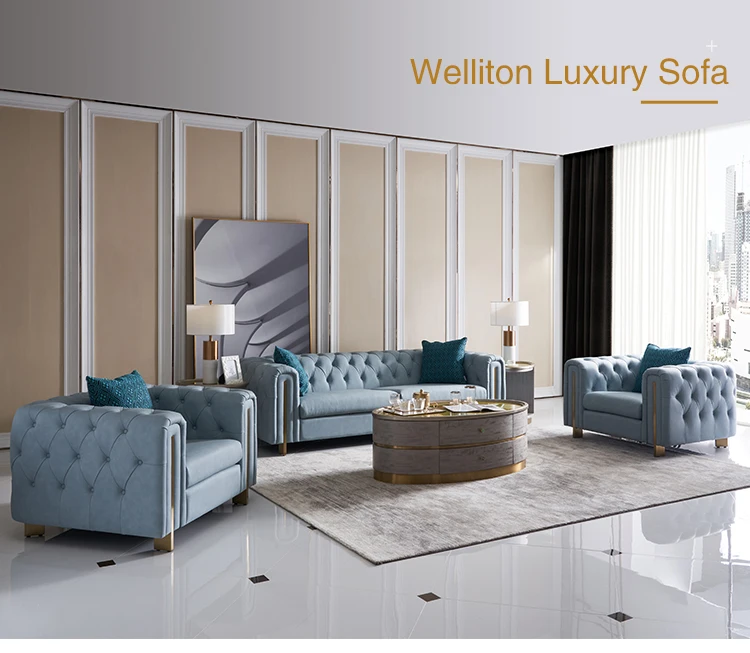 Welliton OEM Modern Living Room Furniture Luxury Genuine Leather Wood Sofa Set