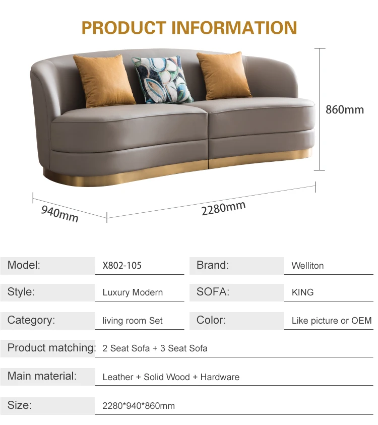 Welliton OEM ODM Italy Genuine Leather Wood Modern Style Sectional Furniture Luxury Living Room Sofa