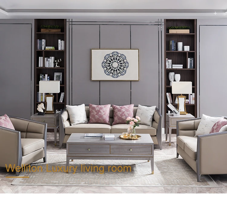Welliton OEM ODM Italian Style Apartment Hotel Home Furniture Genuine Leather Modern Living Room Sofa
