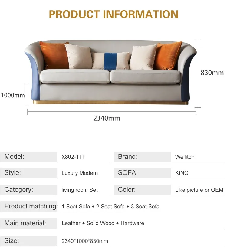 Home Movable Housing Furniture & Household Appliances Living Room Furniture Sofa Dongguan Welliton Furniture Co., Ltd. Welliton OEM ODM Italian Luxury Style Home Hotel Living Room Furniture Modern Sectional Leather Sofa