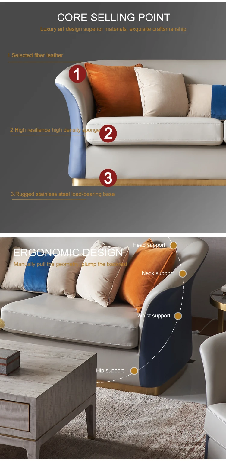 Welliton OEM ODM Italian Luxury Style Home Hotel Living Room Furniture Modern Sectional Leather Sofa