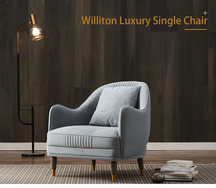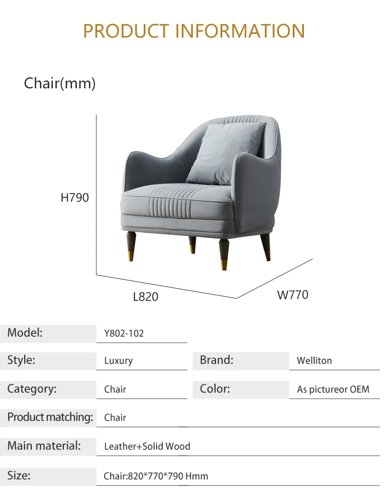 Welliton OEM ODM Italy Style Sectional Furniture Wood Leather Modern Living Room Single Sofa Chair