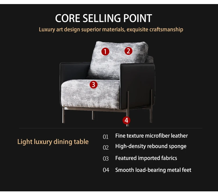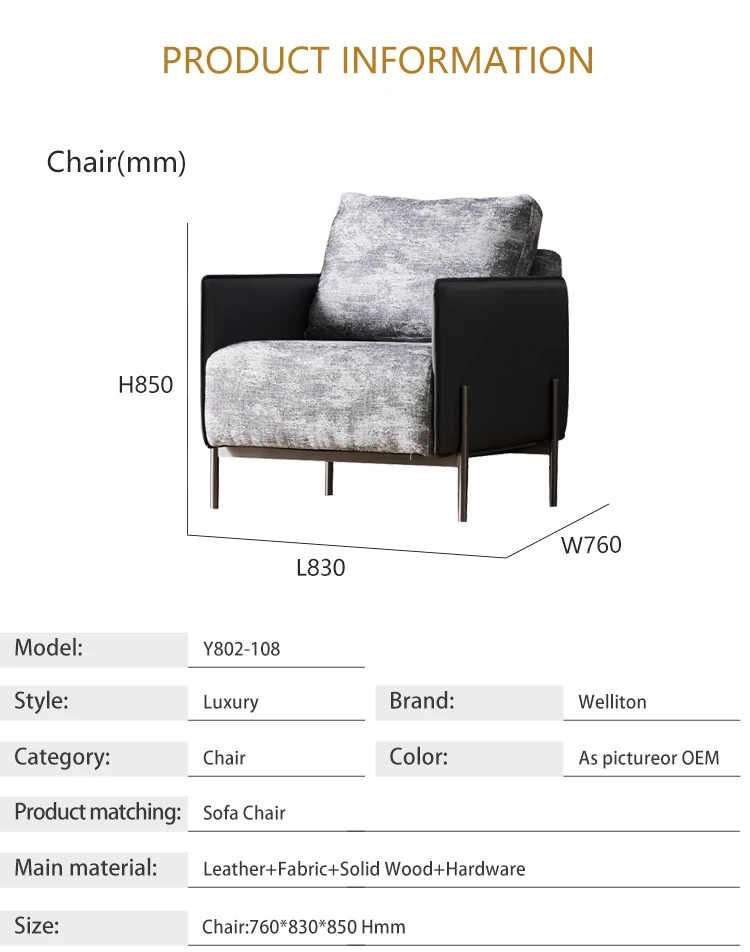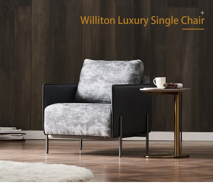 Welliton OEM ODM Modern Style Living Room Furniture Wood Italian Leather Fabric Single Sofa Chair
