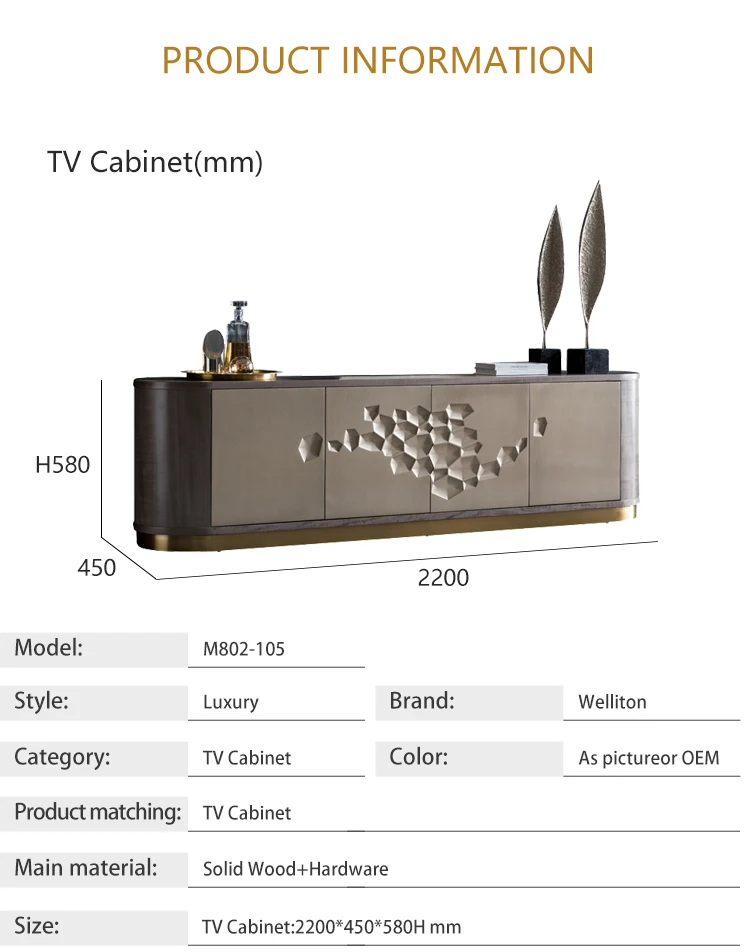 Welliton OEM ODM Hotel Villa Home Living Room Furniture Hardware Wooden TV Stand