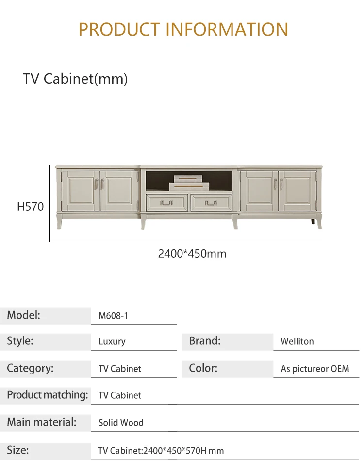 Welliton OEM ODM Living Room Furniture Solid Wood Modern TV Stand Cabinet