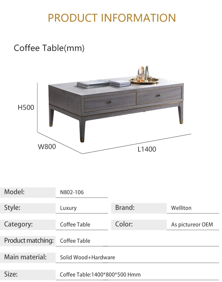 Welliton OEM ODM Living Room Furniture Solid Wood Multifunctional Coffee Table