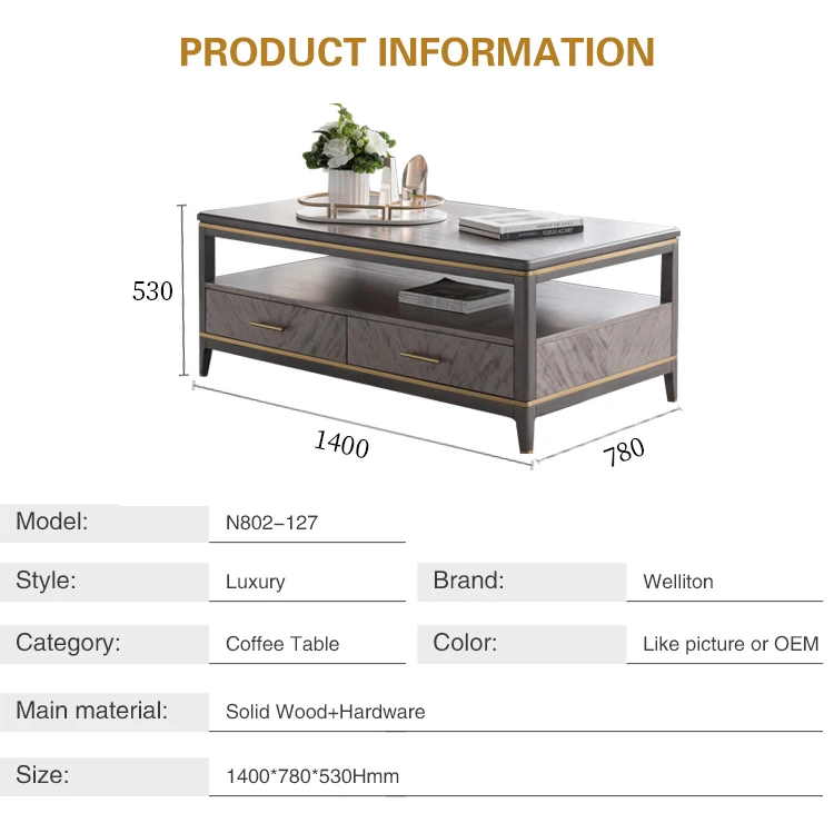 Welliton OEM Luxury Home Living Room Furniture Solid Wood Hardware Acrylic Square Modern Coffee Table