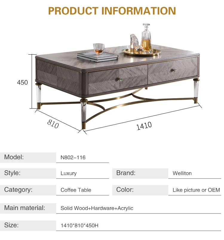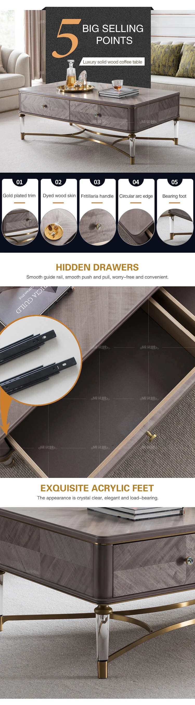Welliton OEM Home Living Room Furniture Solid Wood Hardware Acrylic Square Coffee Table