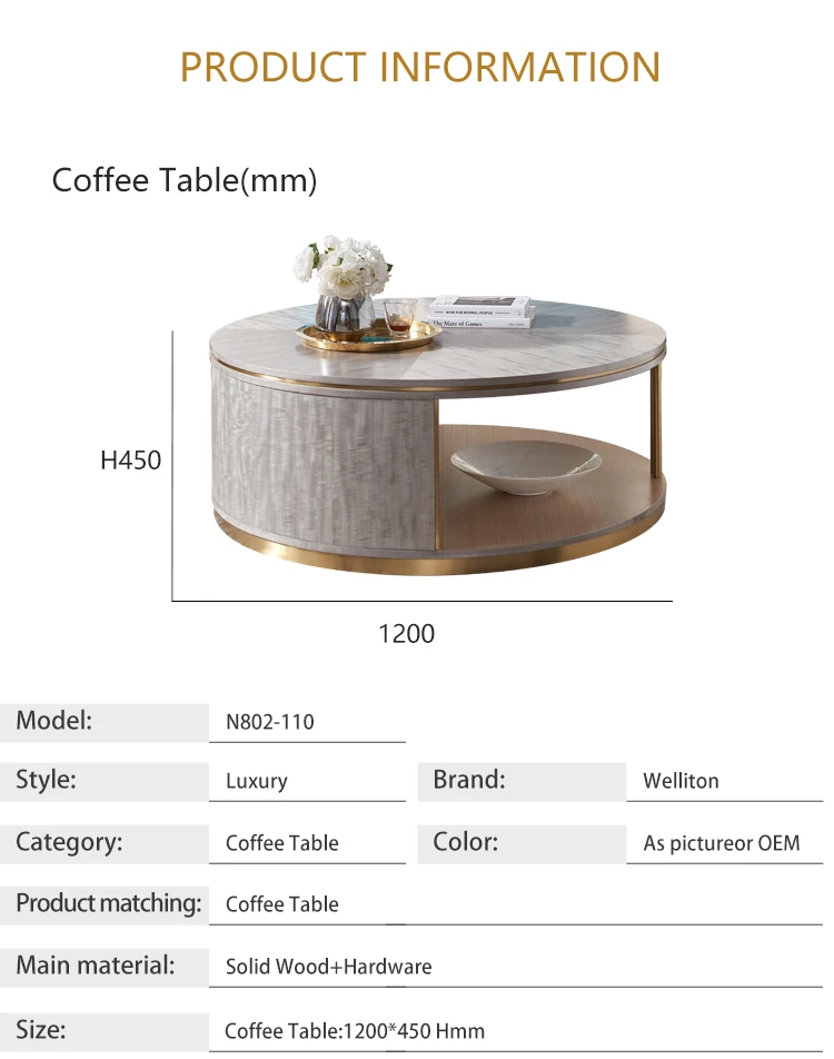 Welliton OEM Home Hotel Villa Living Room Furniture Hardware Solid Wood Modern Luxury Coffee Table