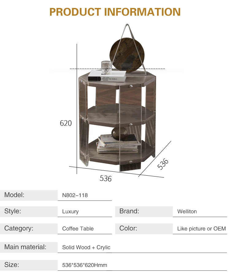 Welliton OEM Luxury Home Furniture Solid Wood Acrylic Living Room Modern Coffee Table