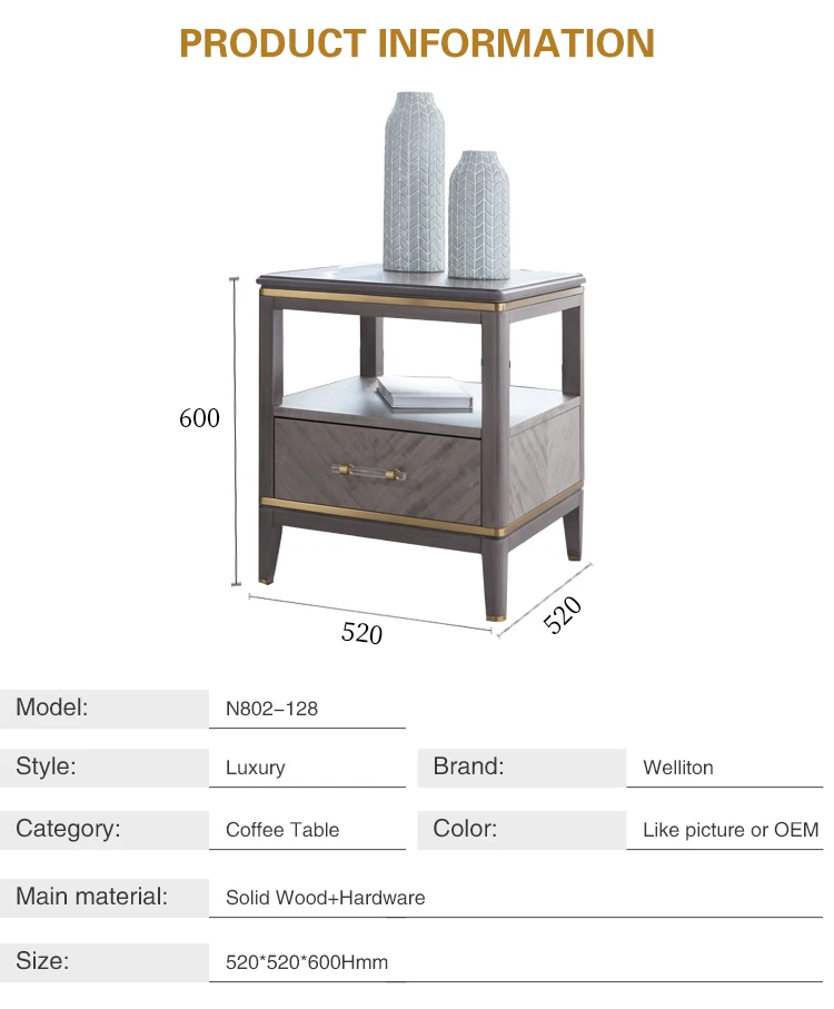 Welliton OEM Antique Solid Wood Home Furniture Living Room Square Modern Coffee Table