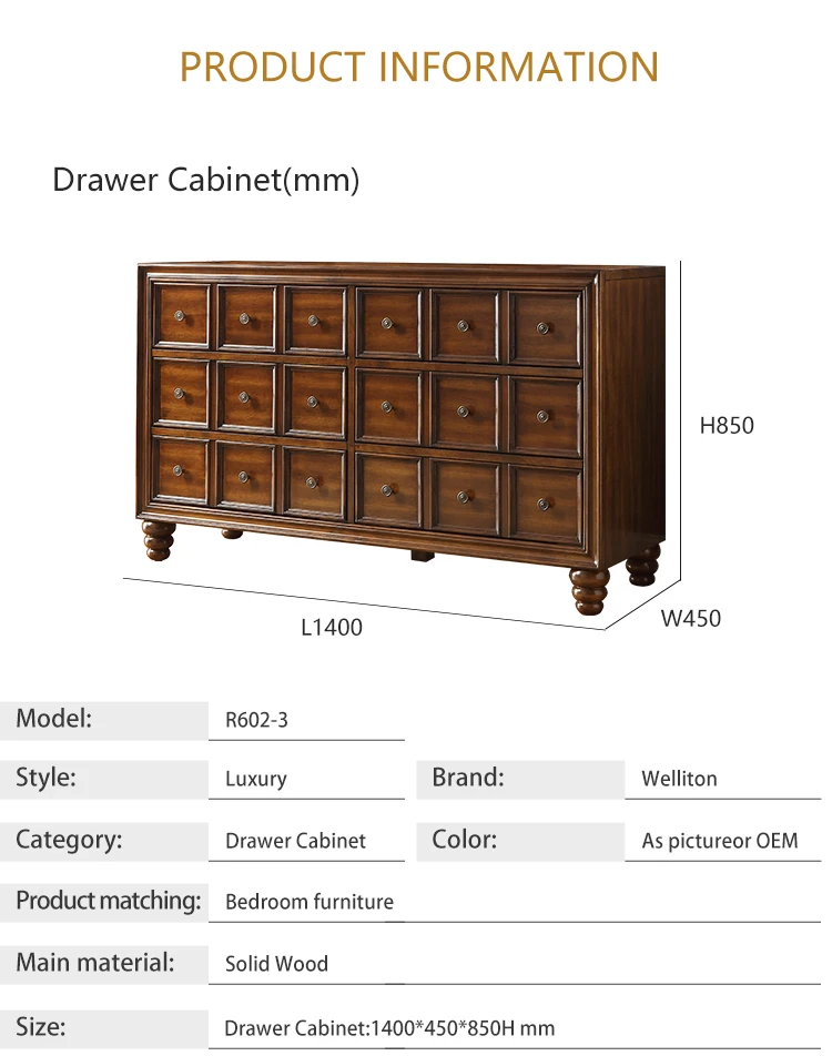 Welliton OEM Luxury Style Furniture Bedroom Living Room Modern Storage Drawer Cabinets