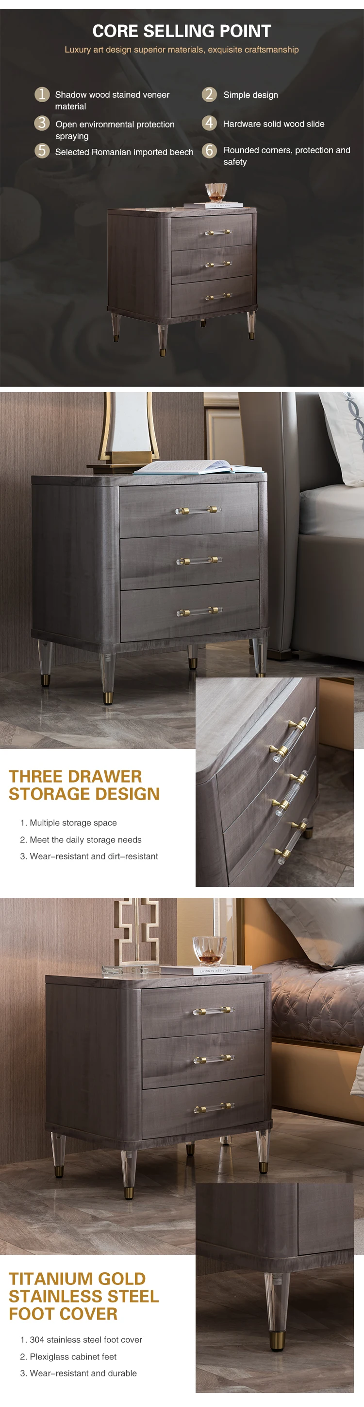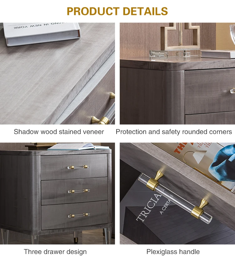 Home Movable Housing Furniture & Household Appliances Bedroom Furniture Nightstands Dongguan Welliton Furniture Co., Ltd. Welliton OEM Luxury Style Bedroom Furniture Solid Wood Modern Bedside Table With Drawers