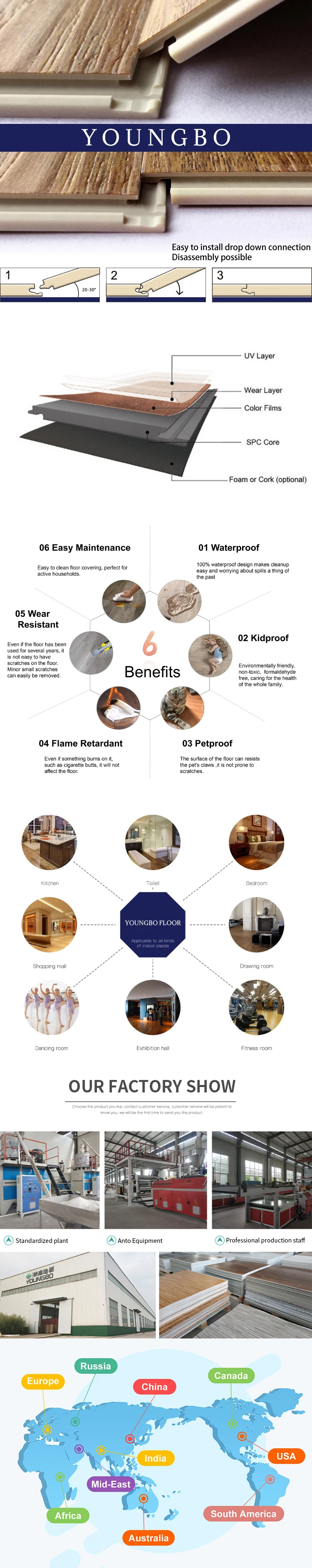 Home Stone,Tiles,Flooring & Walls Material Plastic Flooring SPC Flooring Shanghai Youngbo New Material Co., Ltd. 4MM spc vinyl flooring rigid care interlock click lock to home decoration luxury SPC flooring-YB032