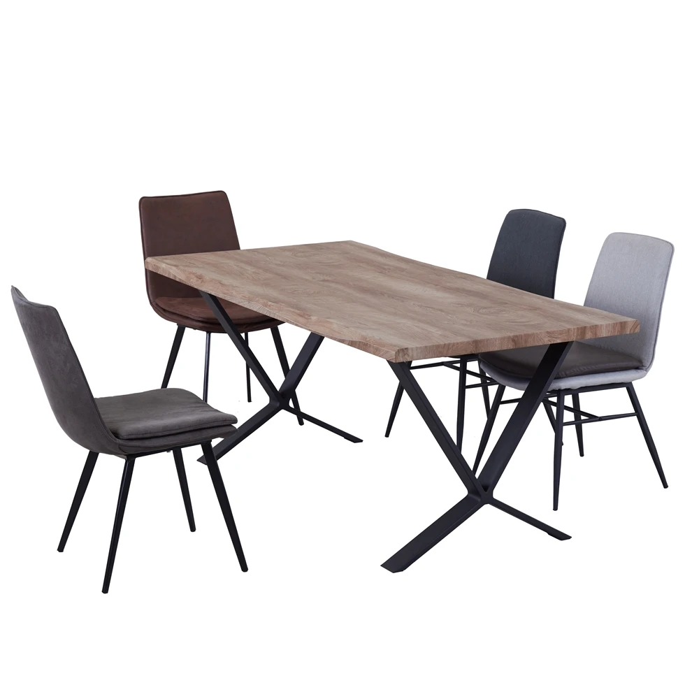 High quality cheap civilian furniture MDF table top with sturdy metal feet modern pu chair dining table set