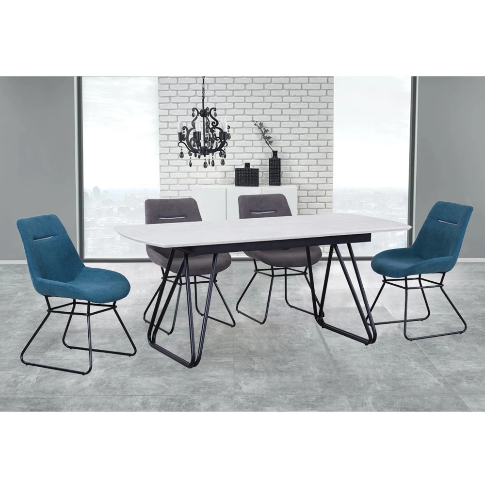 Italian Modern 25mm MDF white painting Luxury Dining Table fabric 4 chairs