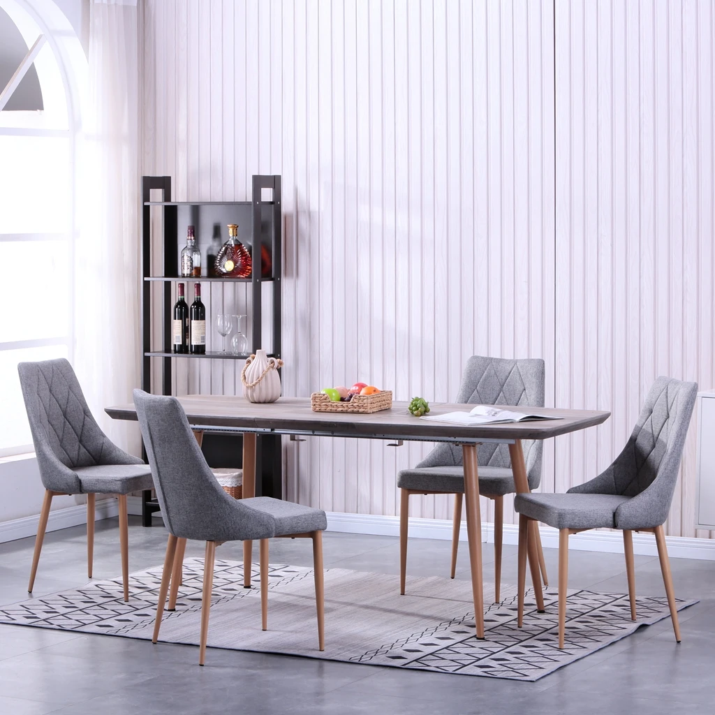 Hotel rectangle Extendable MDF white extending Dining Table 4 Chair Set with wooden transfer legs