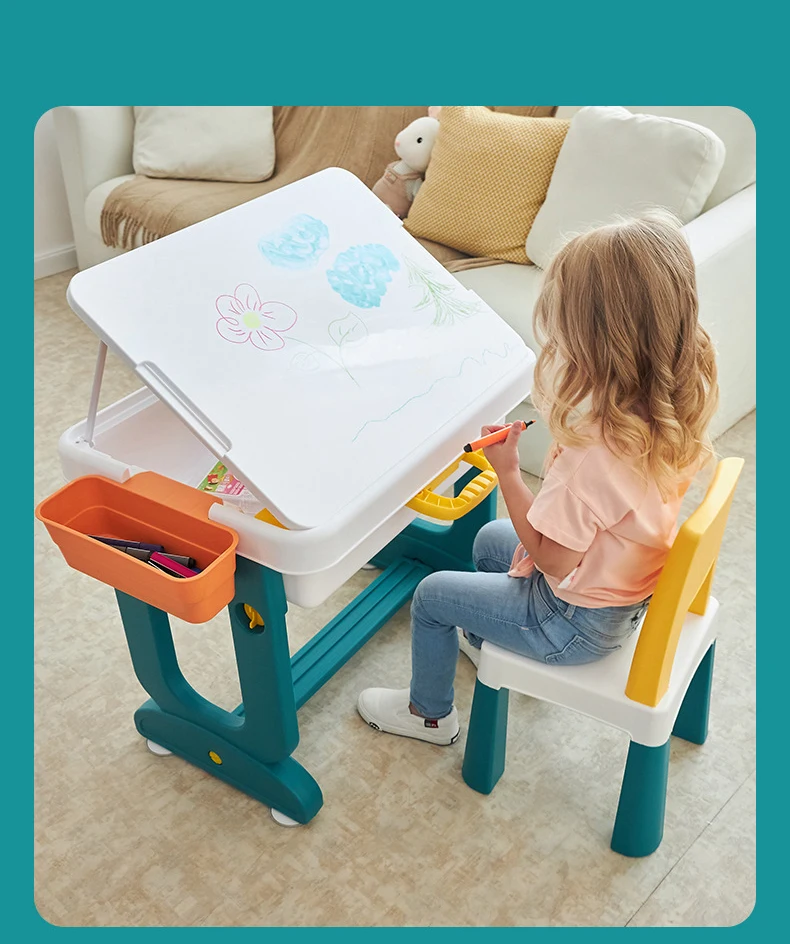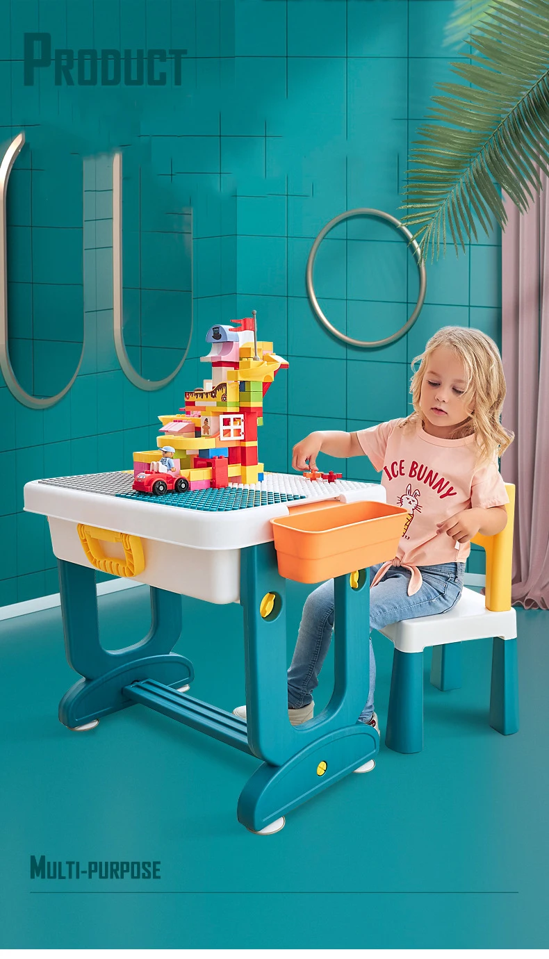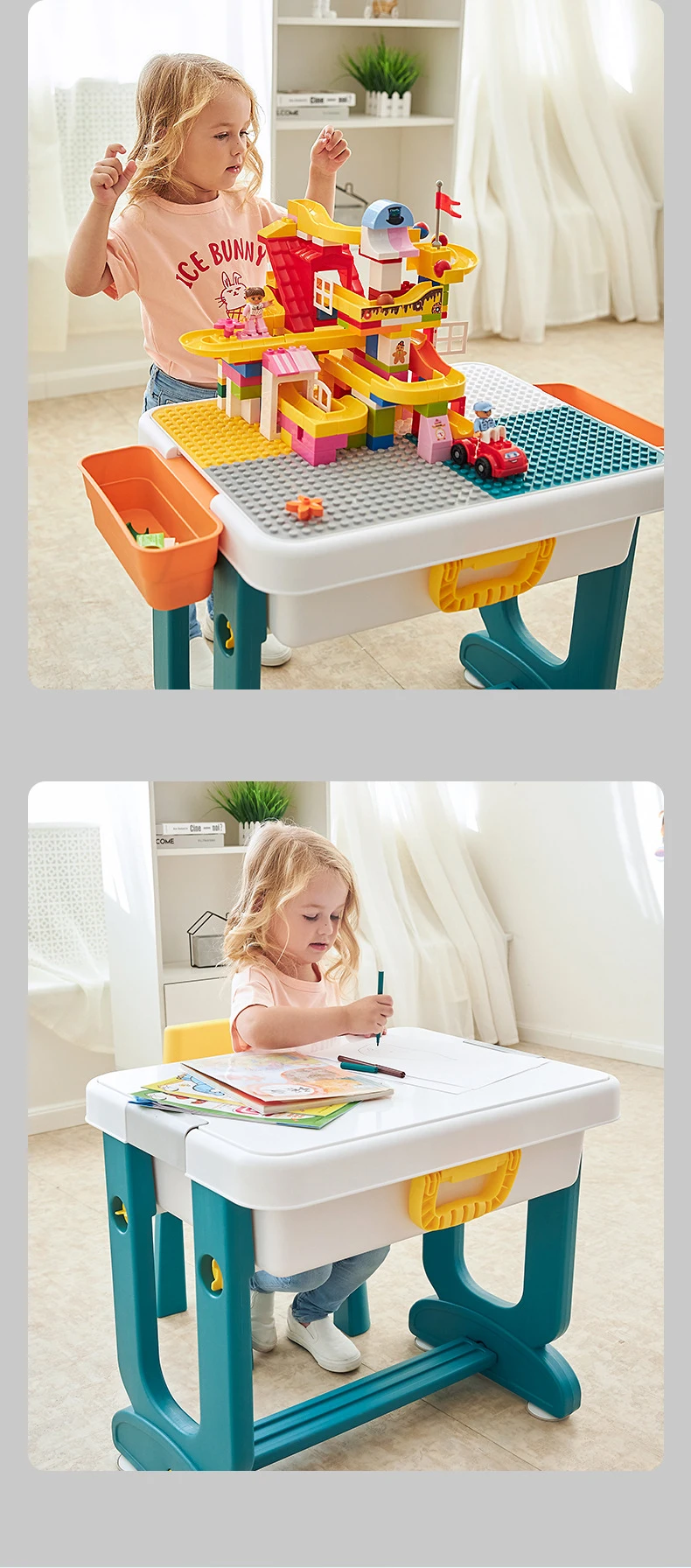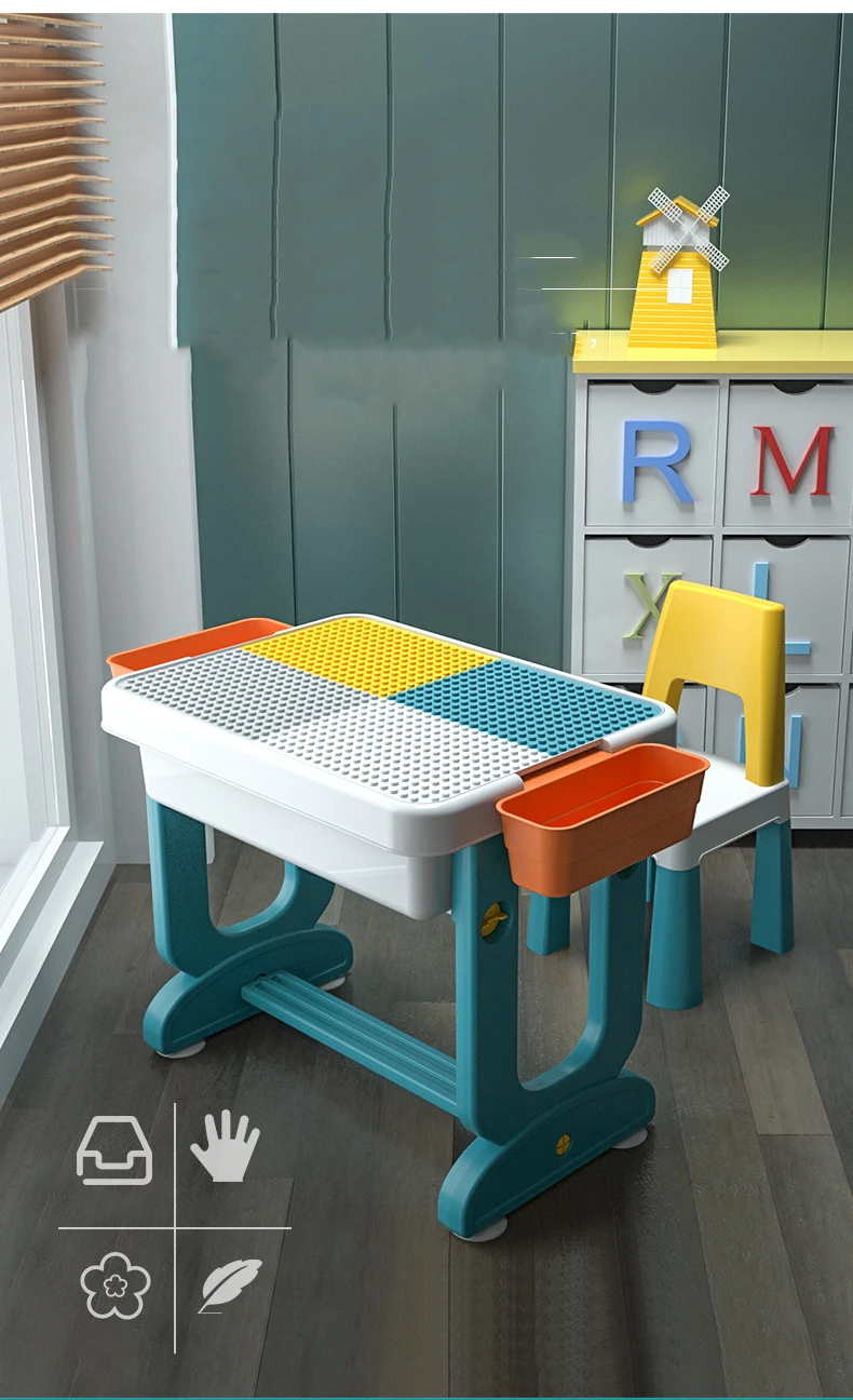 New plastic foldable toddler desk Children learning to draw building blocks Kids Multifunction Painting Table Chair
