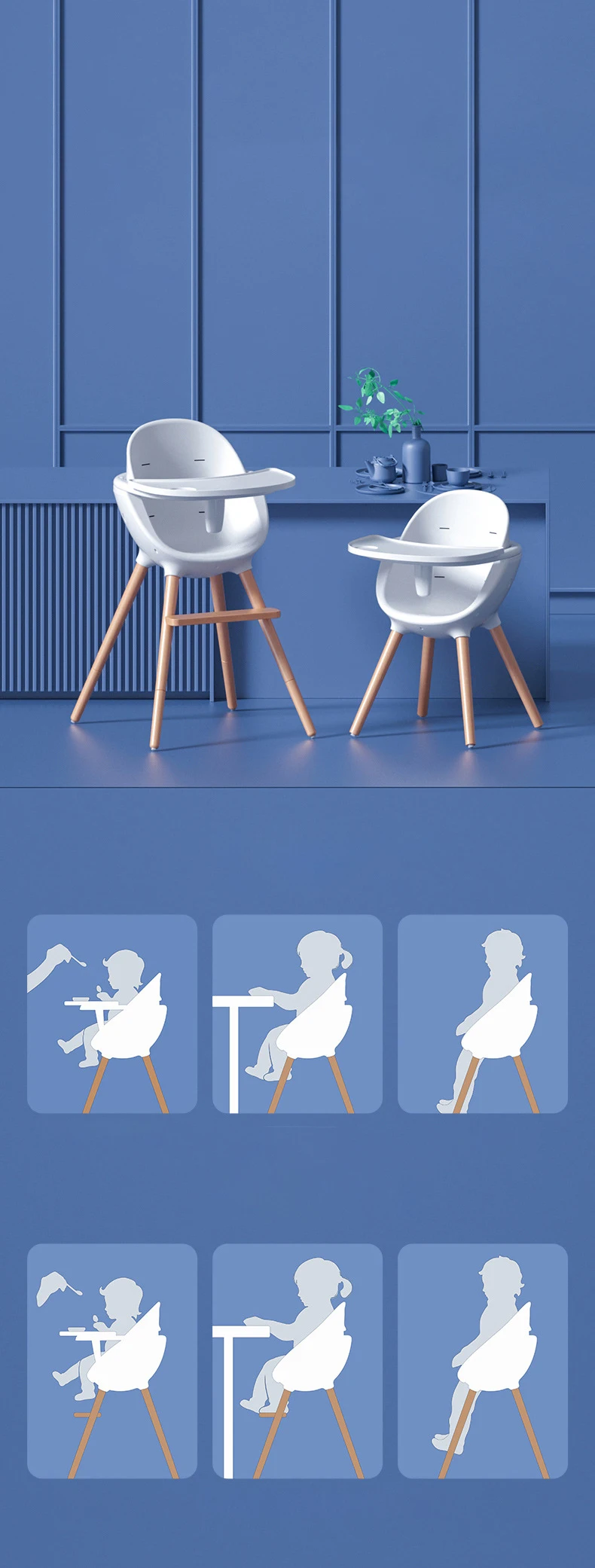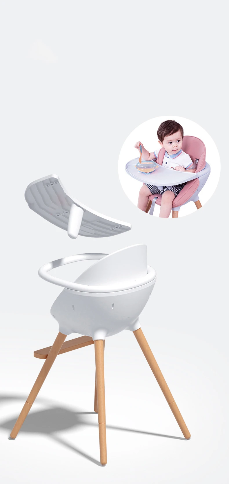 Household baby children's dining table and chair PP Beech Baby Eat High Chair Simple Portable Detachable Baby Eating Chair