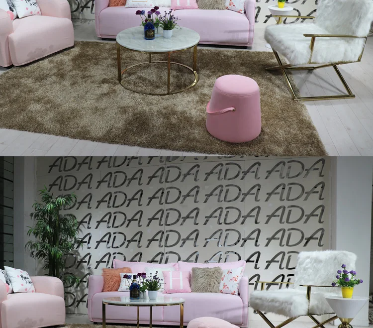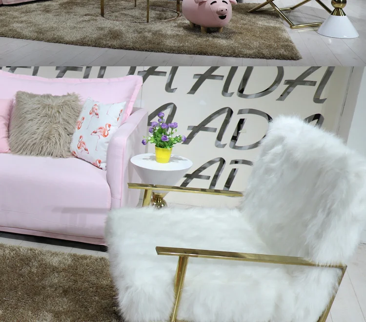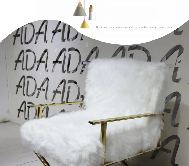 Home Movable Housing Furniture & Household Appliances Living Room Furniture Interior Chair Langfang Yifeihuang Imports&Exports Co., Ltd. Light luxury hotel furniture banquet artificial fluffy stainless steel with gold finish single sofa chair