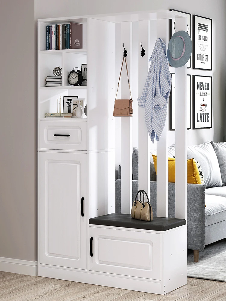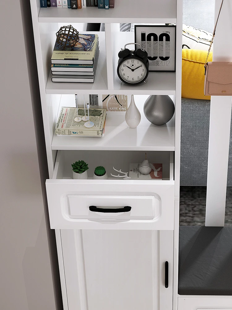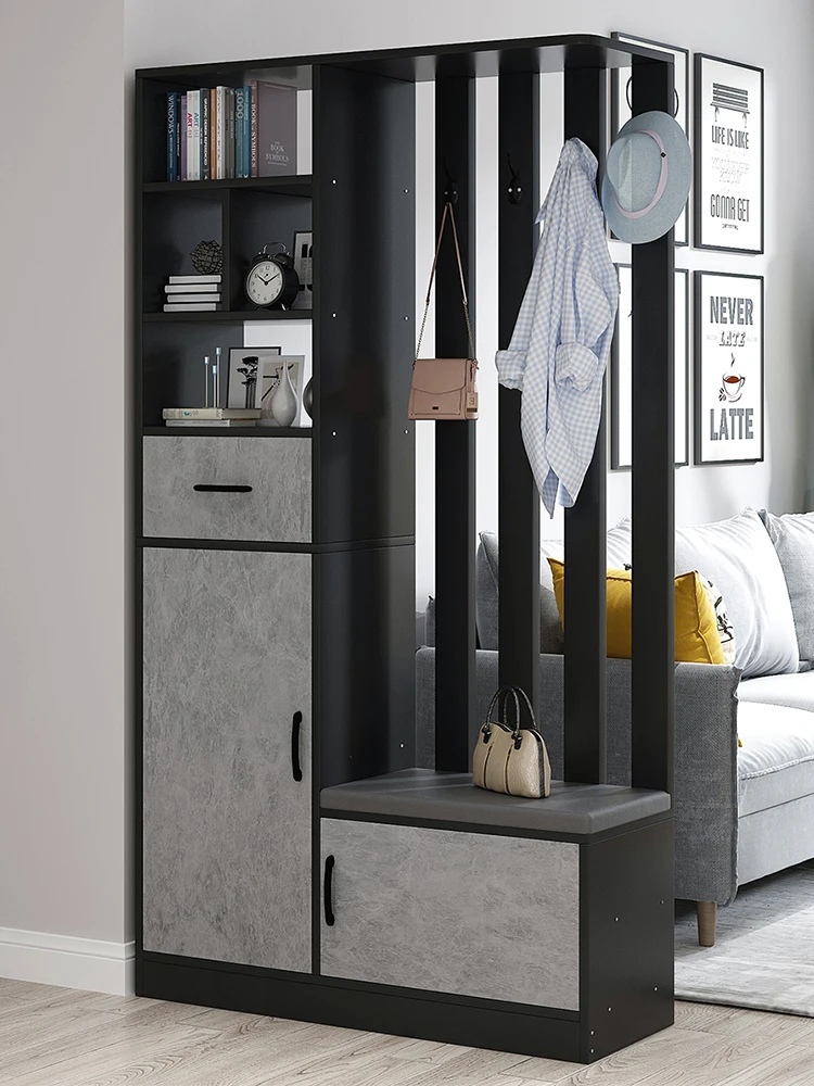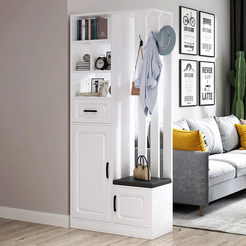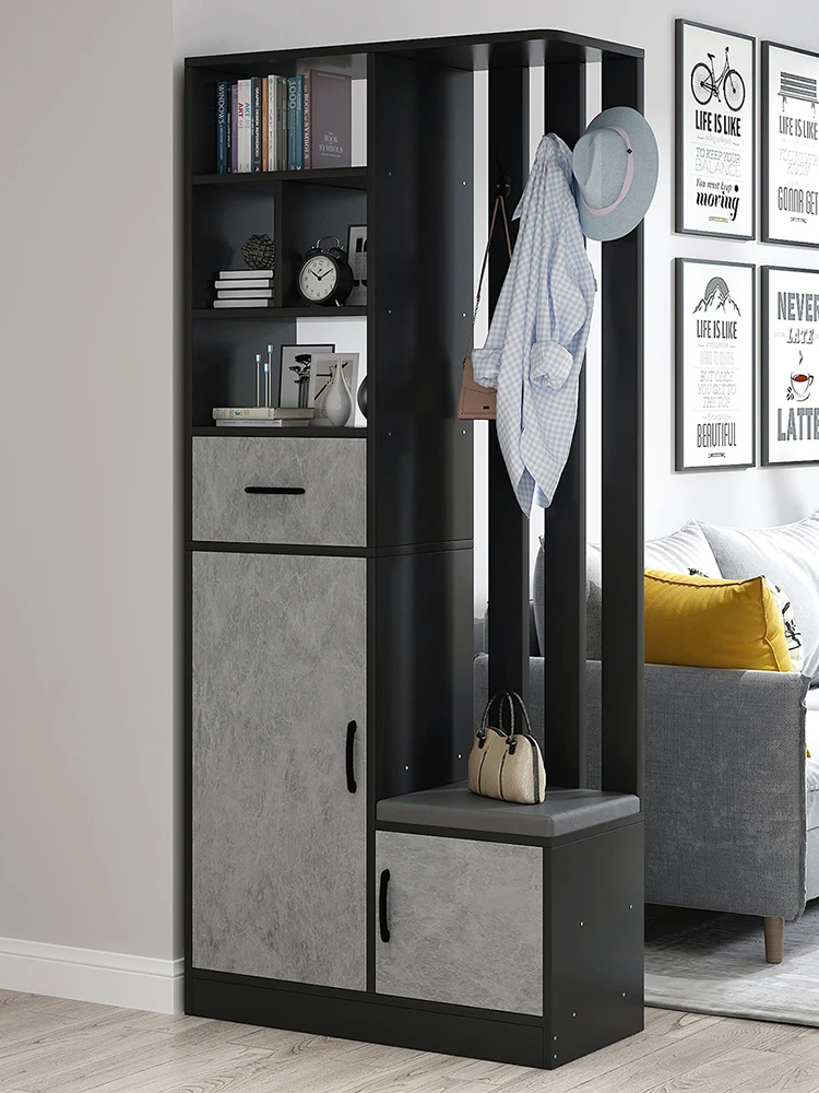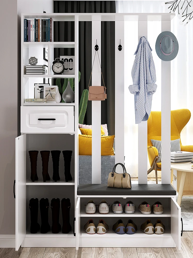 Entrance Cabinet open type large capacity shoe cabinet modern entrance wooden shoe rack with shoe changing stool