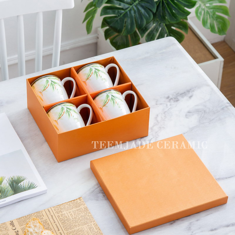 Home Hospitality Supplies Dinnerware Cup Chaozhou Teemjade Ceramics Co., Ltd. New Arrival Nordic Style Ceramic Coffee Cup 350ml Flower Or Leaf Ceramic Mugs Porcelain Tea Mug