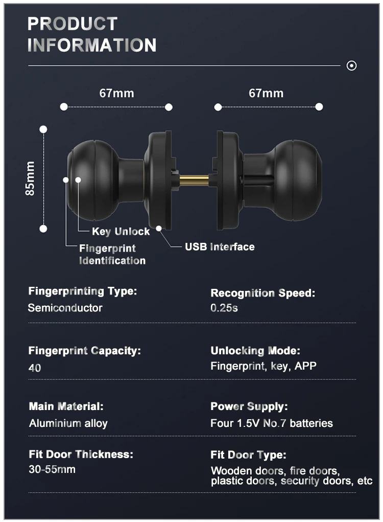 Fit Door Type | Wooden doors, fire doors, plastic doors, security doors, etc | ||