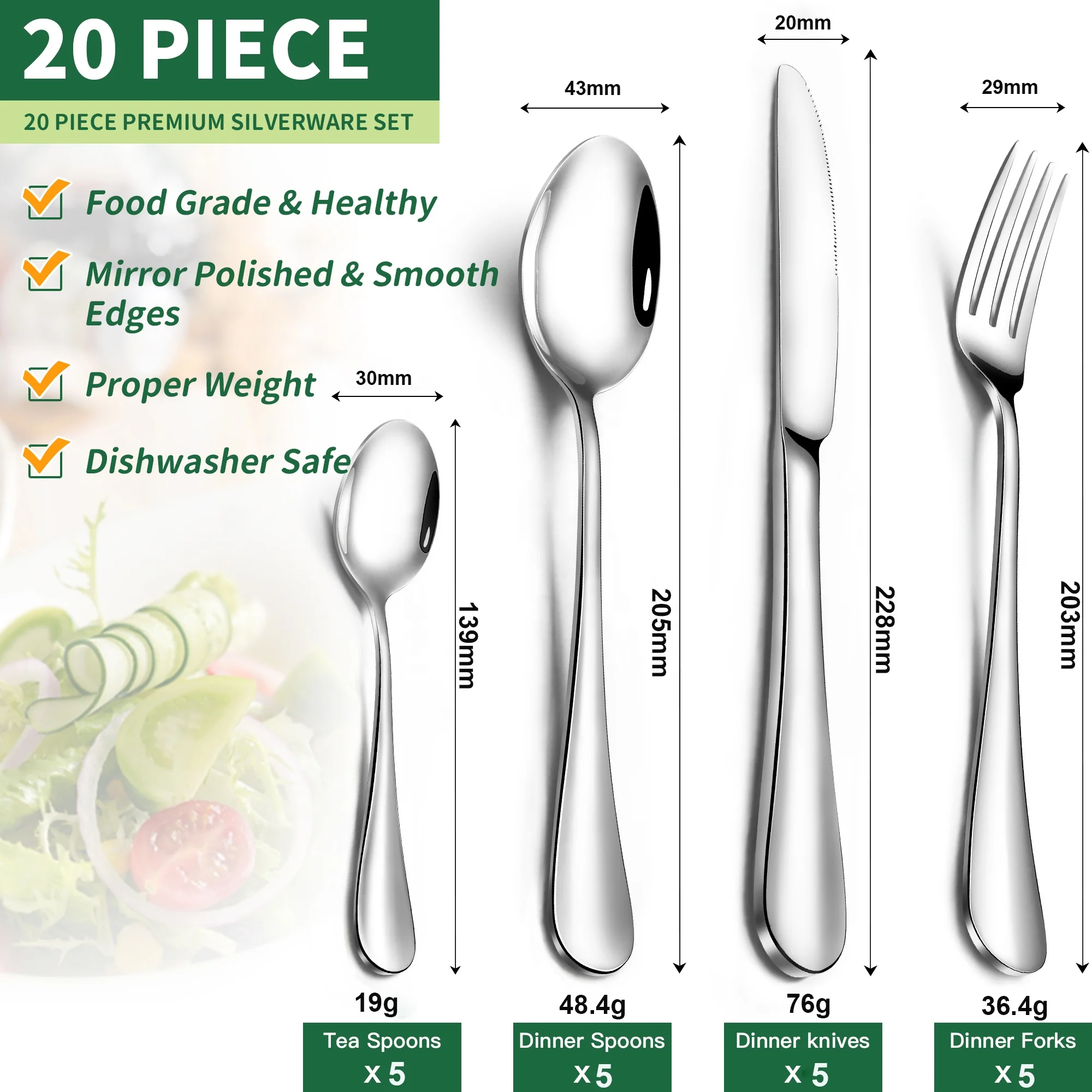 Including | spoon x 5 tea spoon x 5 fork x 5 knife x 5 |